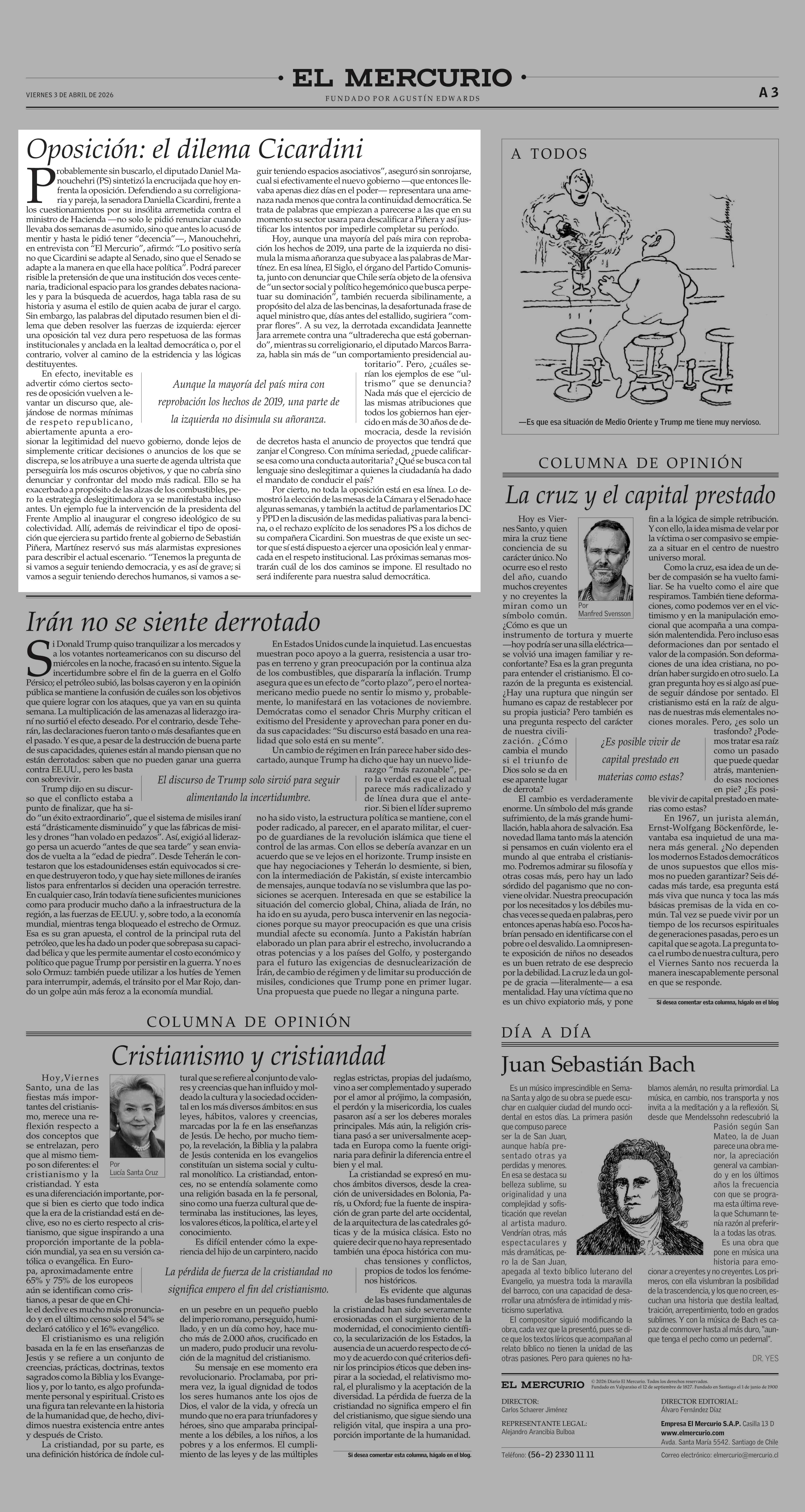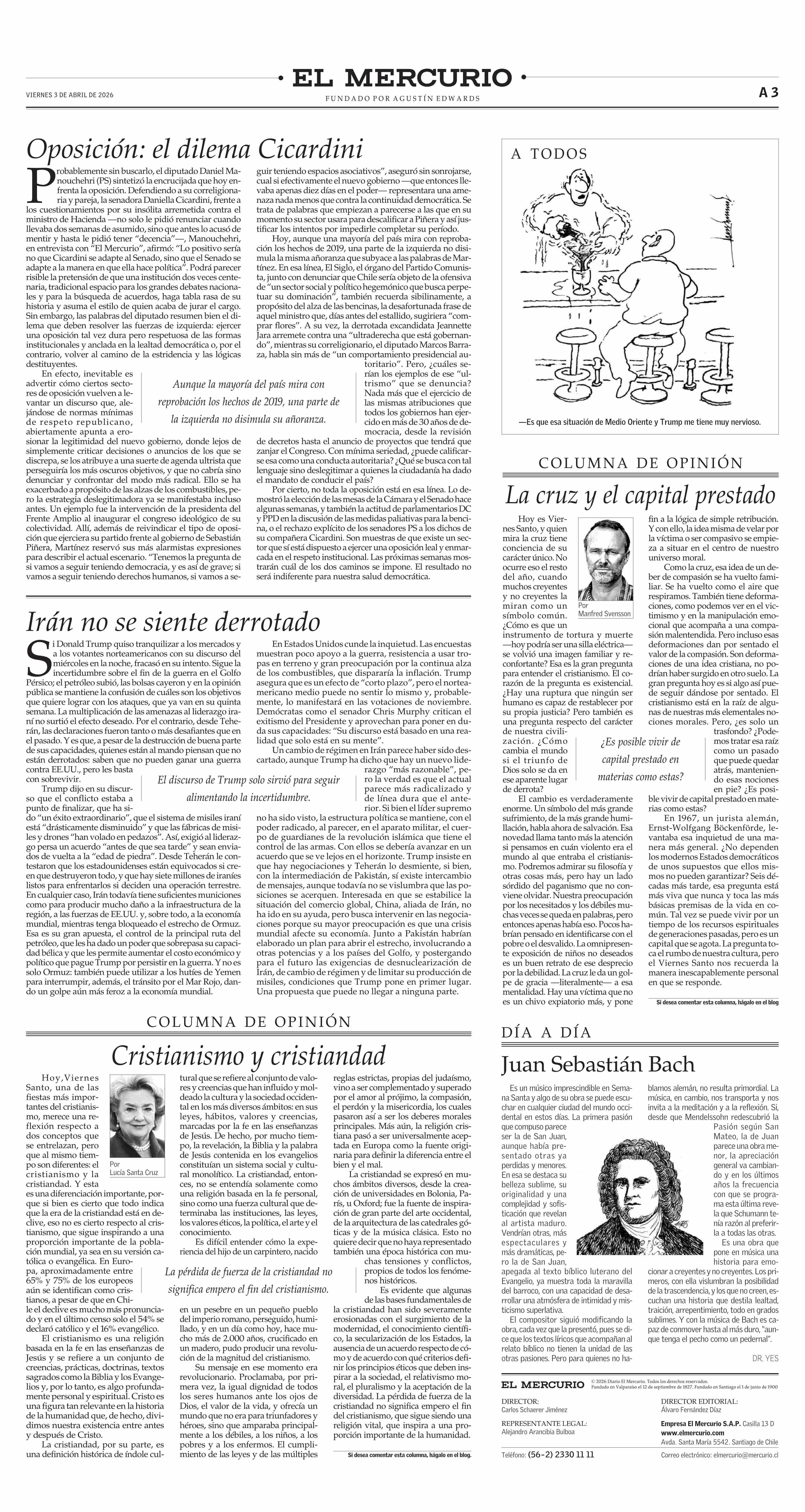 Editorial: Oposición: el dilema Cicardini 03-04-2026 El Mercurio |
