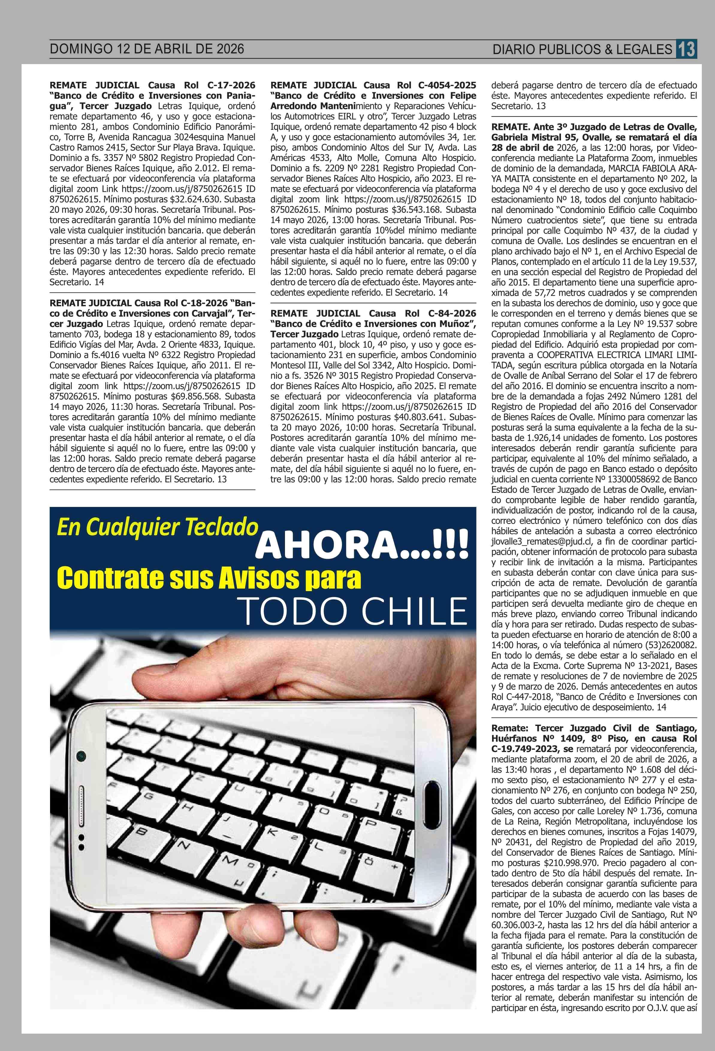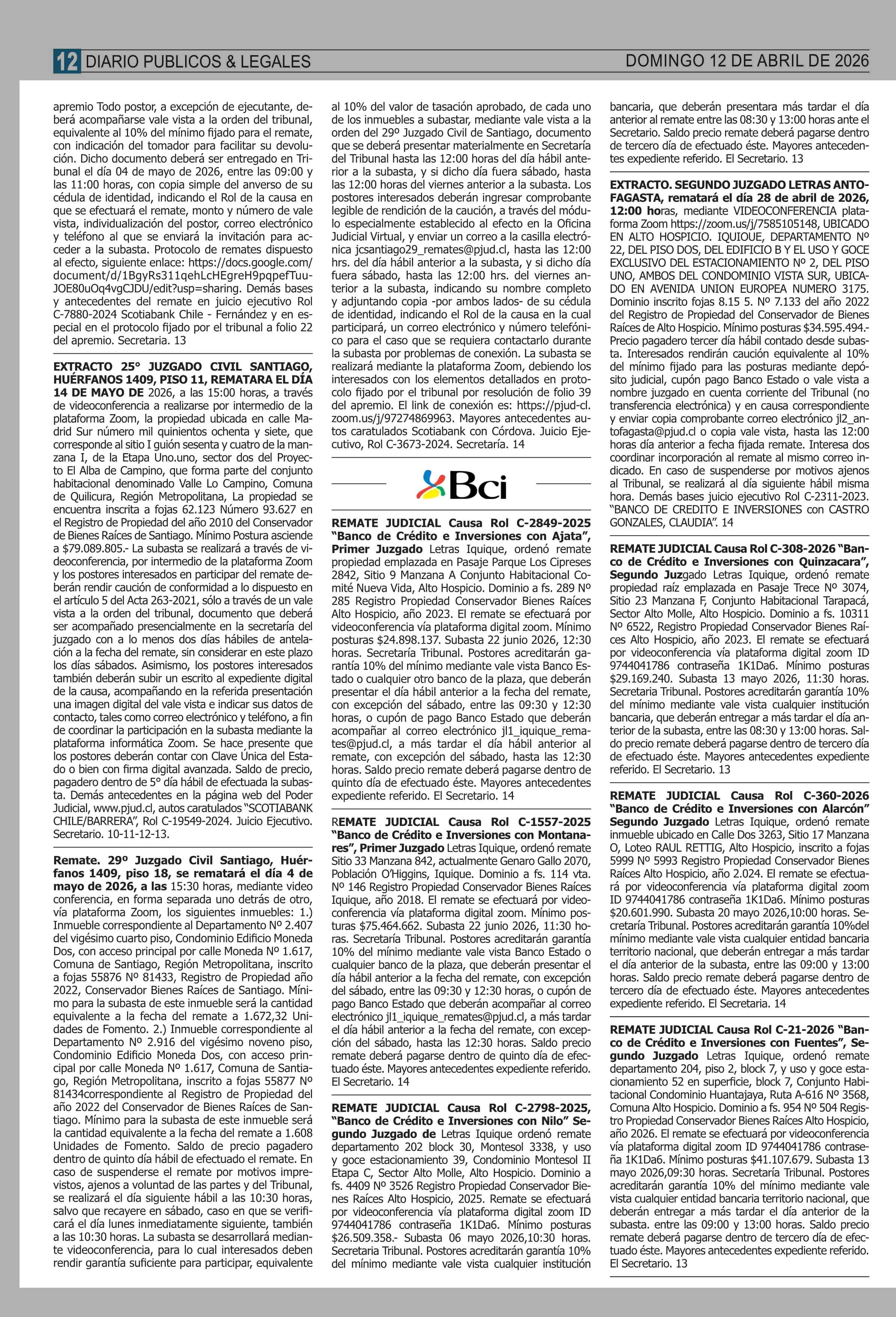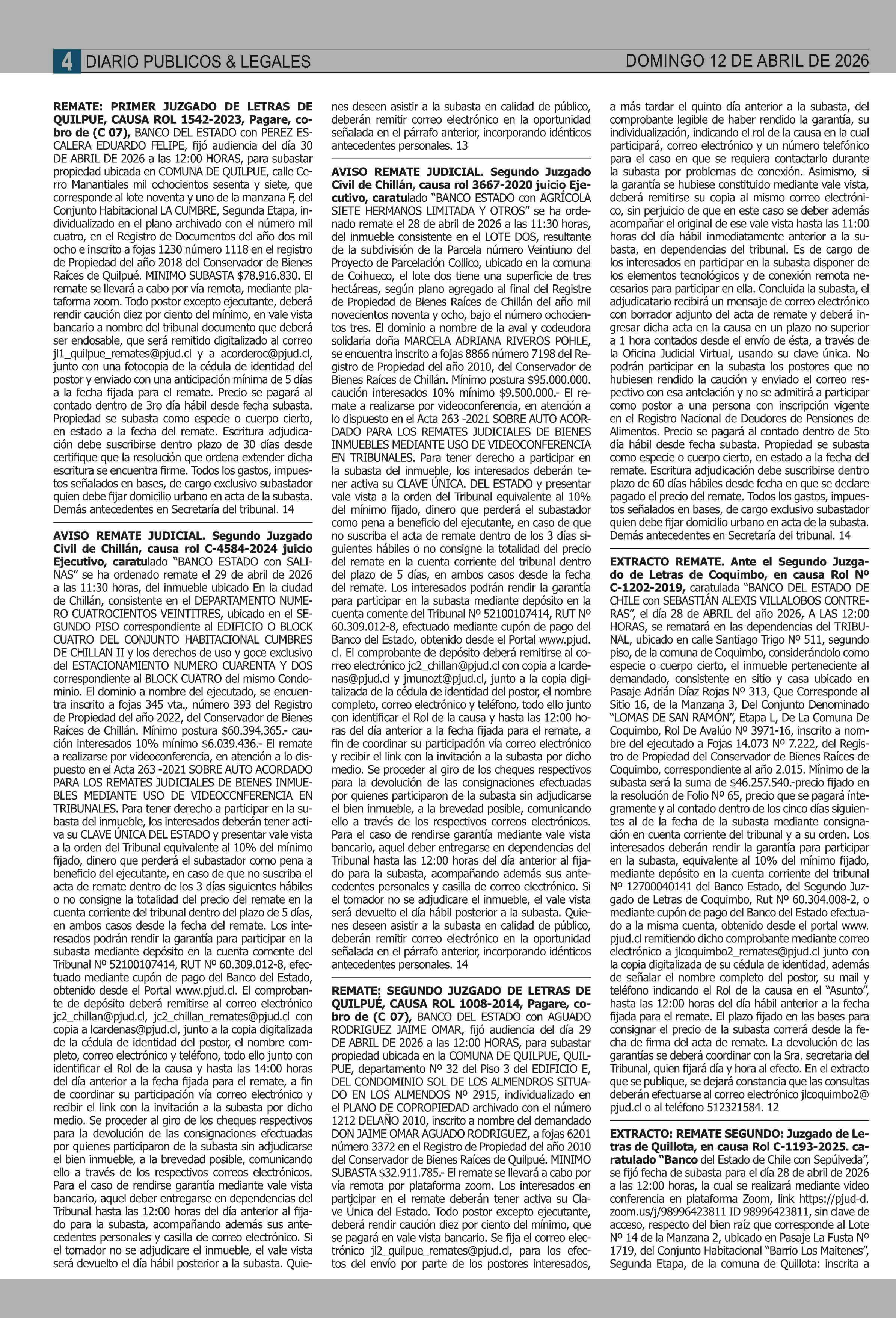 REMATES: 12-04-2026 P&L Públicos y Legales |