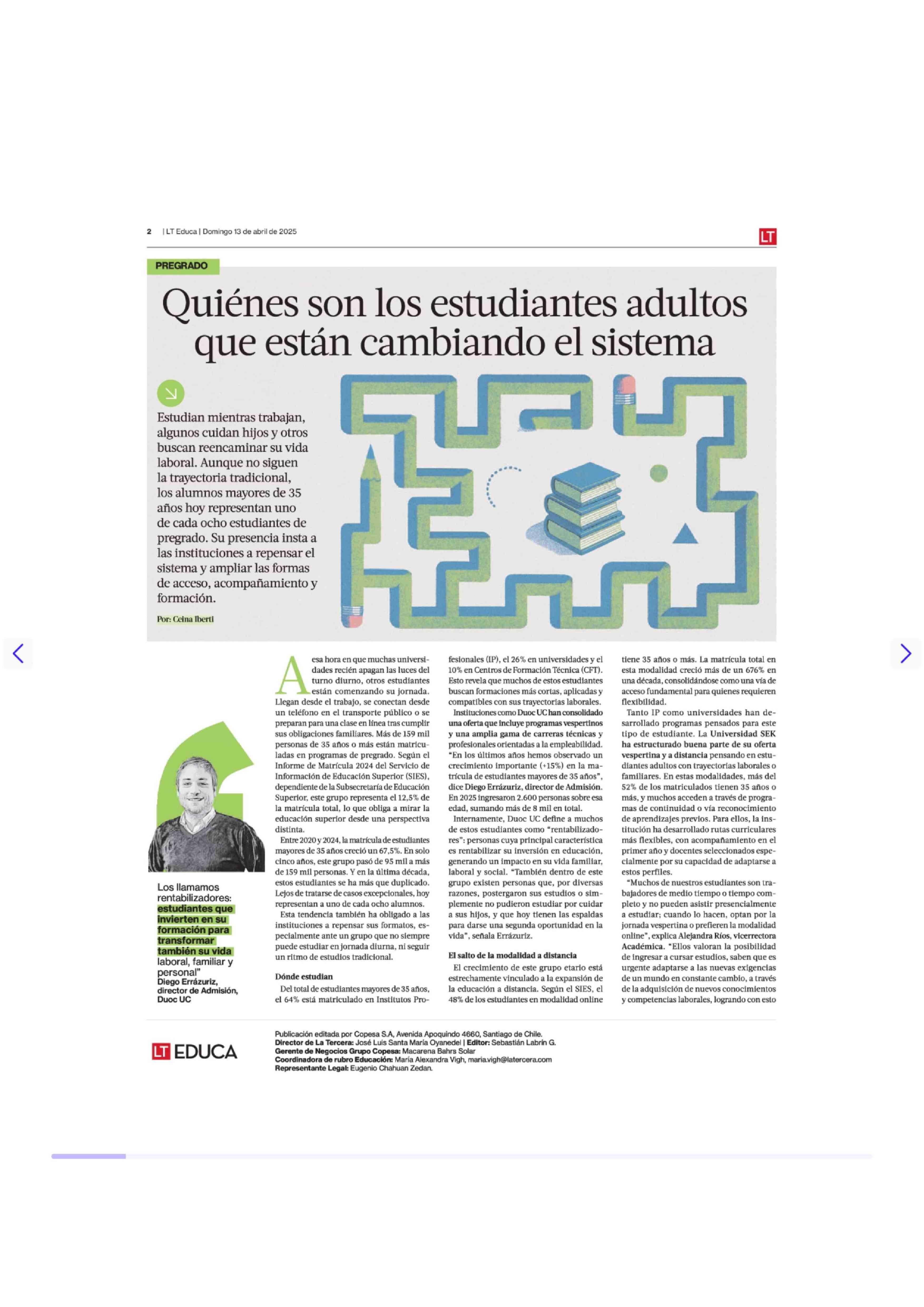 Quiénes son los estudiantes adultos que están cambiando el sistema 13-04-2025 La Tercera |