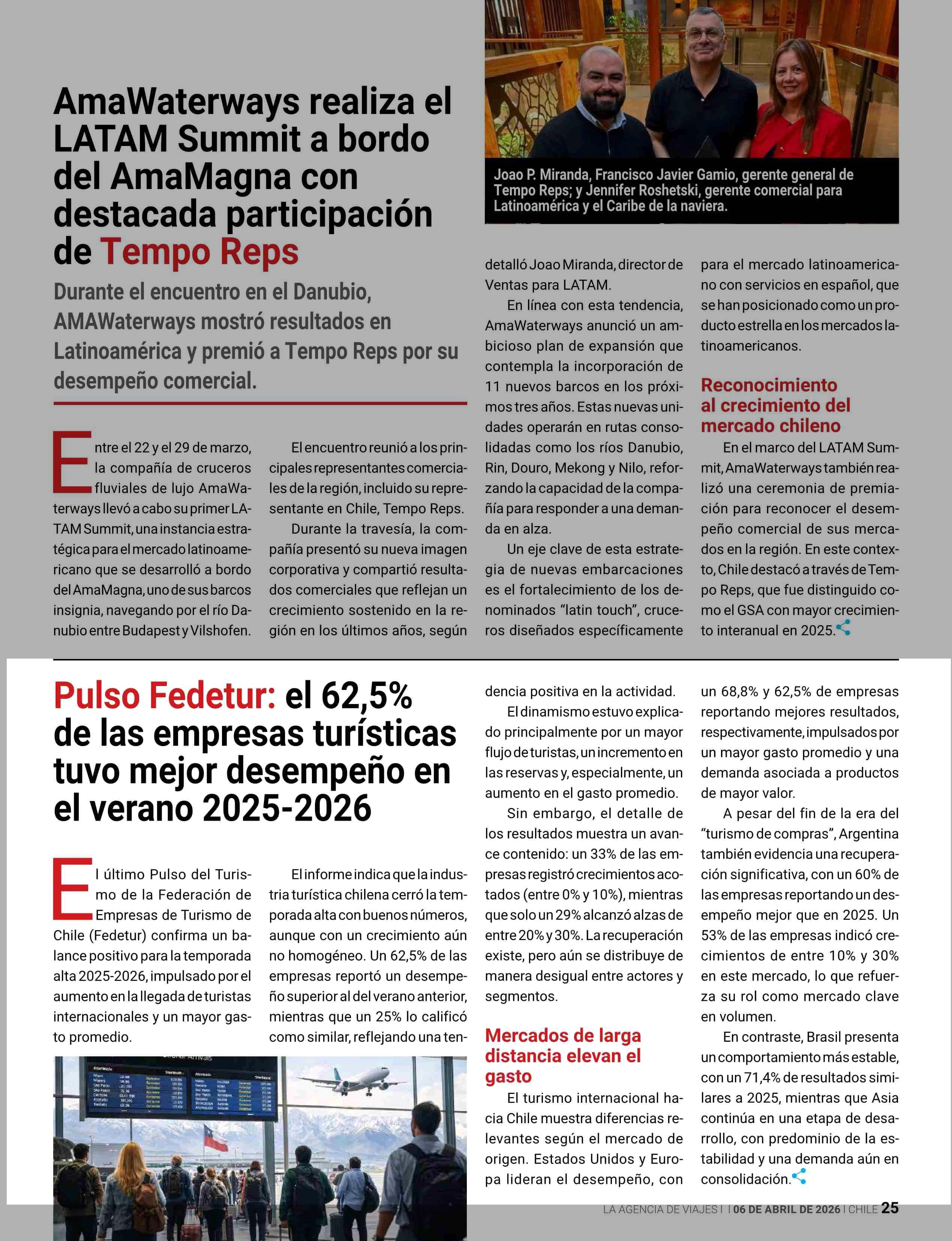 Pulso Fedetur: el 62,5% de las empresas turísticas tuvo mejor desempeño en el verano 2025-2026 13-04-2026 Revista La Agencia de Viajes |