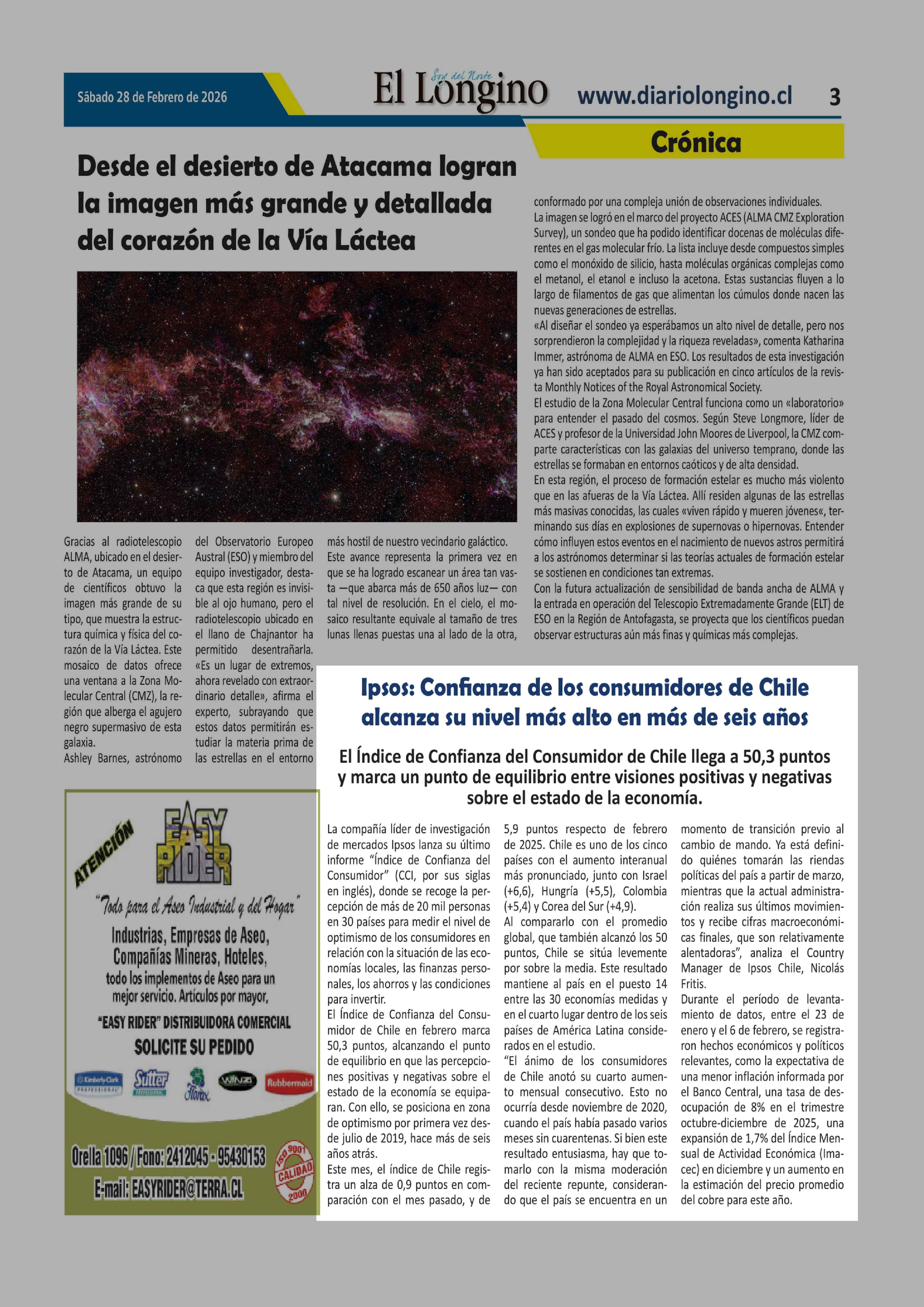 Ipsos: Confianza de los consumidores de Chile alcanza su nivel más alto en más de seis años 28-02-2026 El Longino |