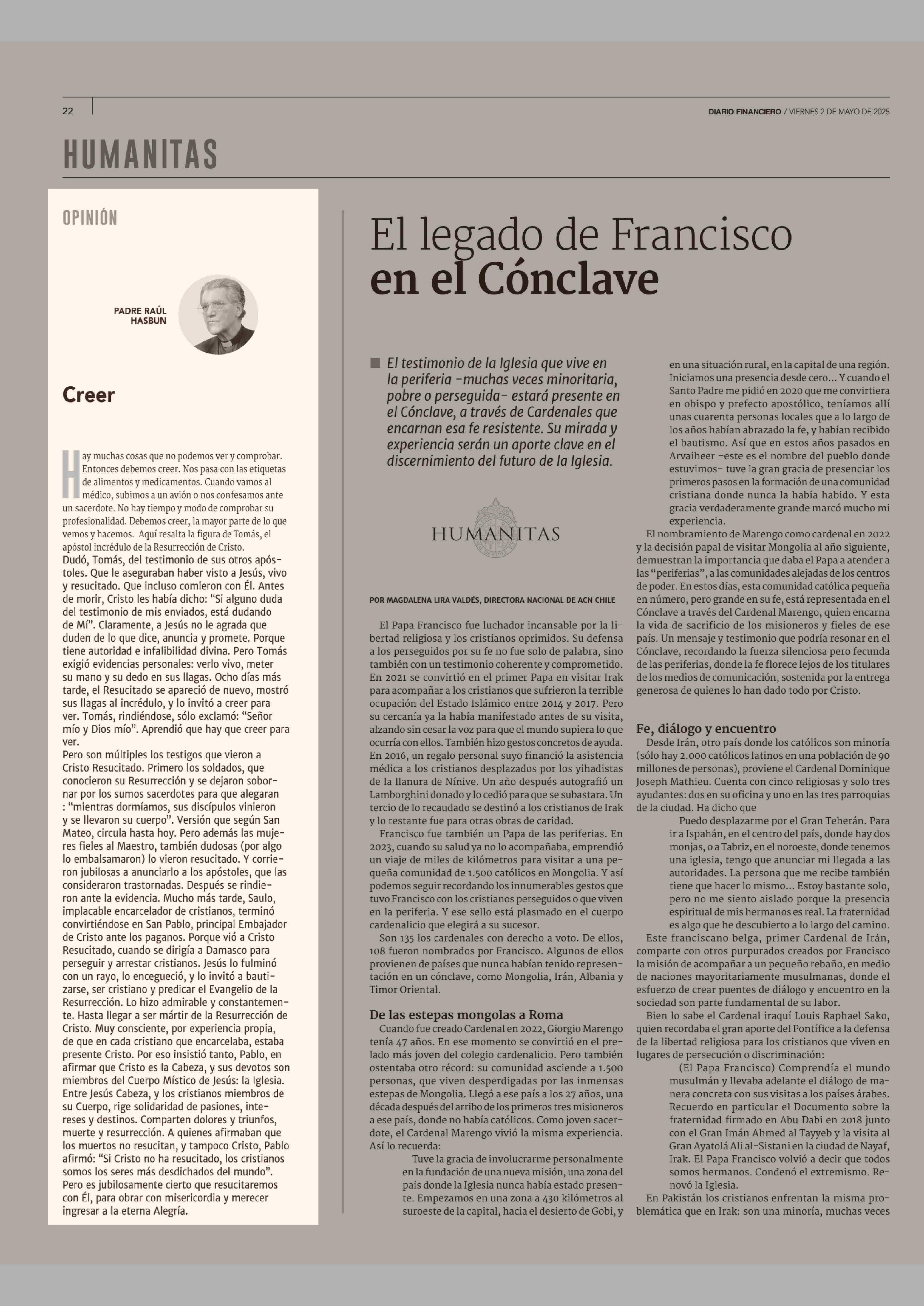 COLUMNAS DE OPINIÓN: Creer 02-05-2025 Diario Financiero |