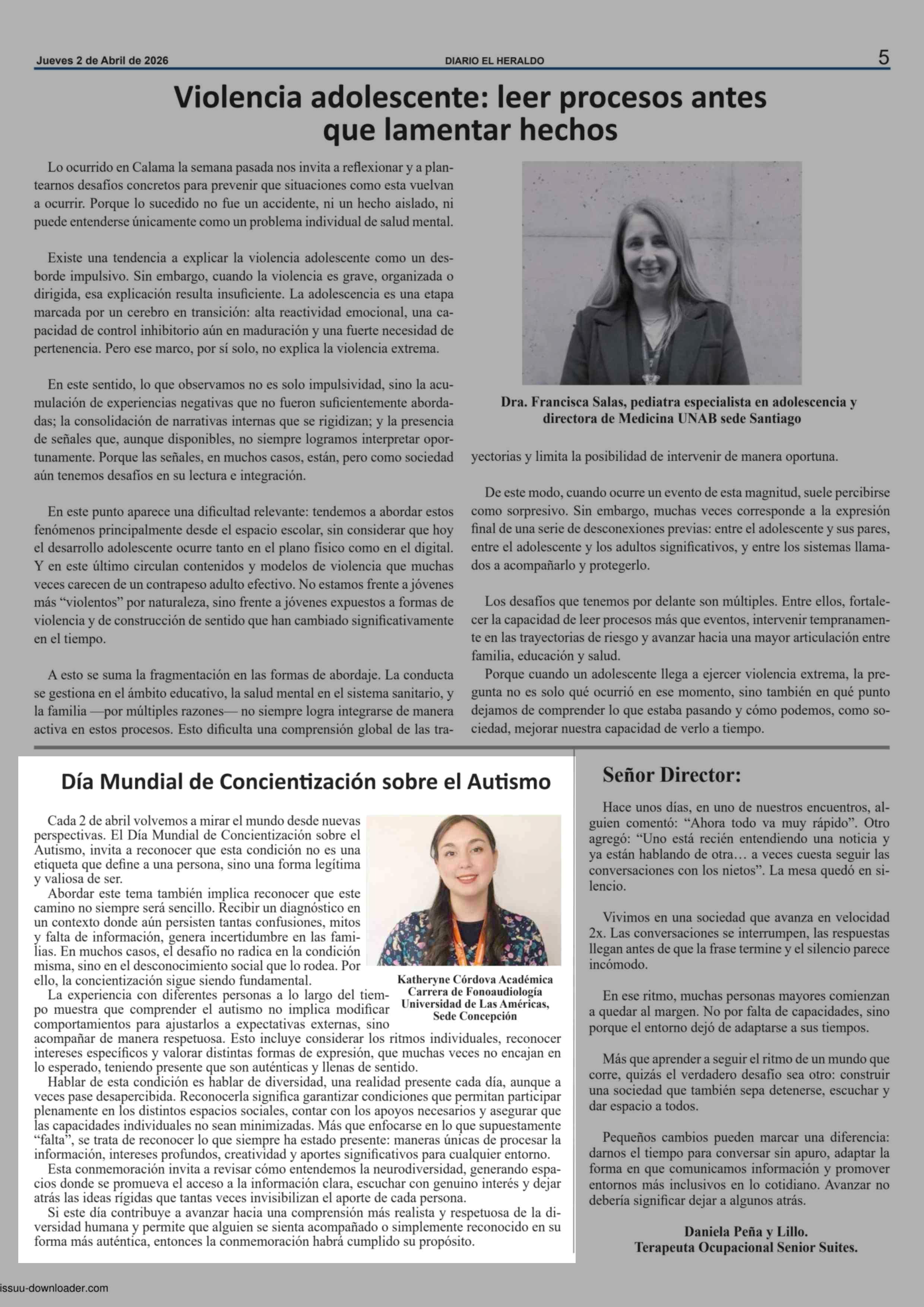 | Título: | Columnas de Opinión: Día Mundial de Concientización sobre el Autismo |