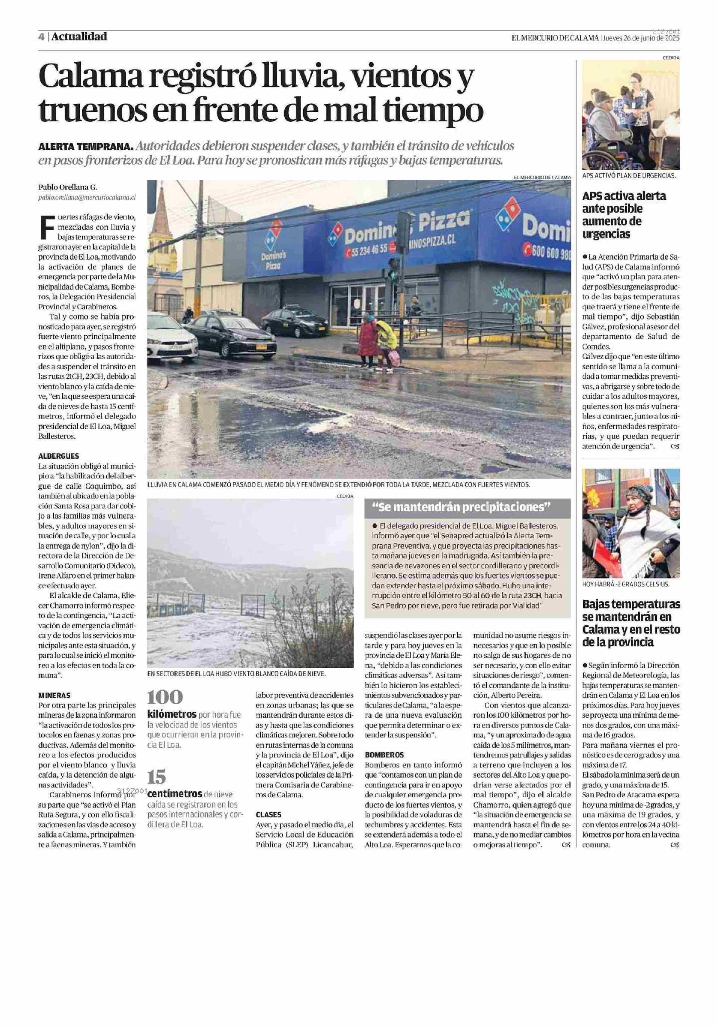 | Fecha: | 26-06-2025 | Sector: | Noticia general | Región: | Región de Antofagasta |