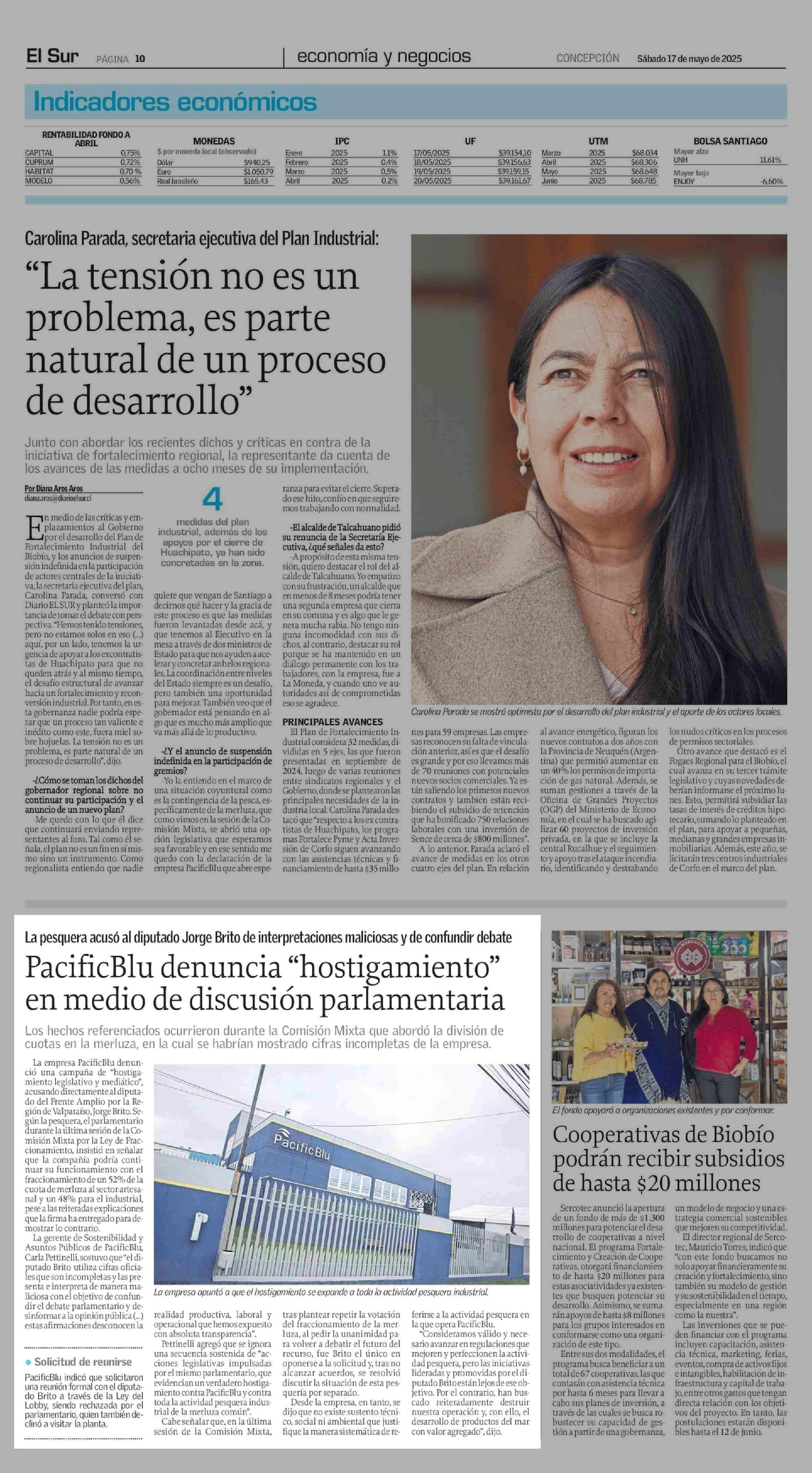 PacificBlu denuncia “hostigamiento” en medio de discusión parlamentaria 17-05-2025 El Sur |