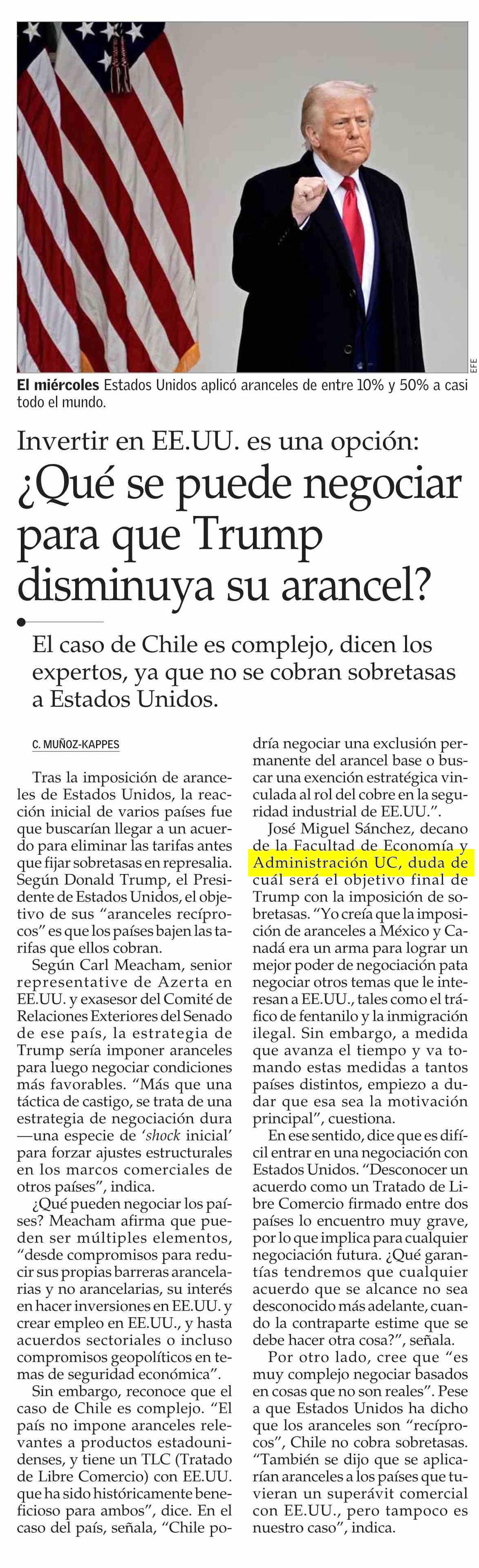 ¿Qué se puede negociar para que Trump disminuya su arancel? 04-04-2025 El Mercurio |