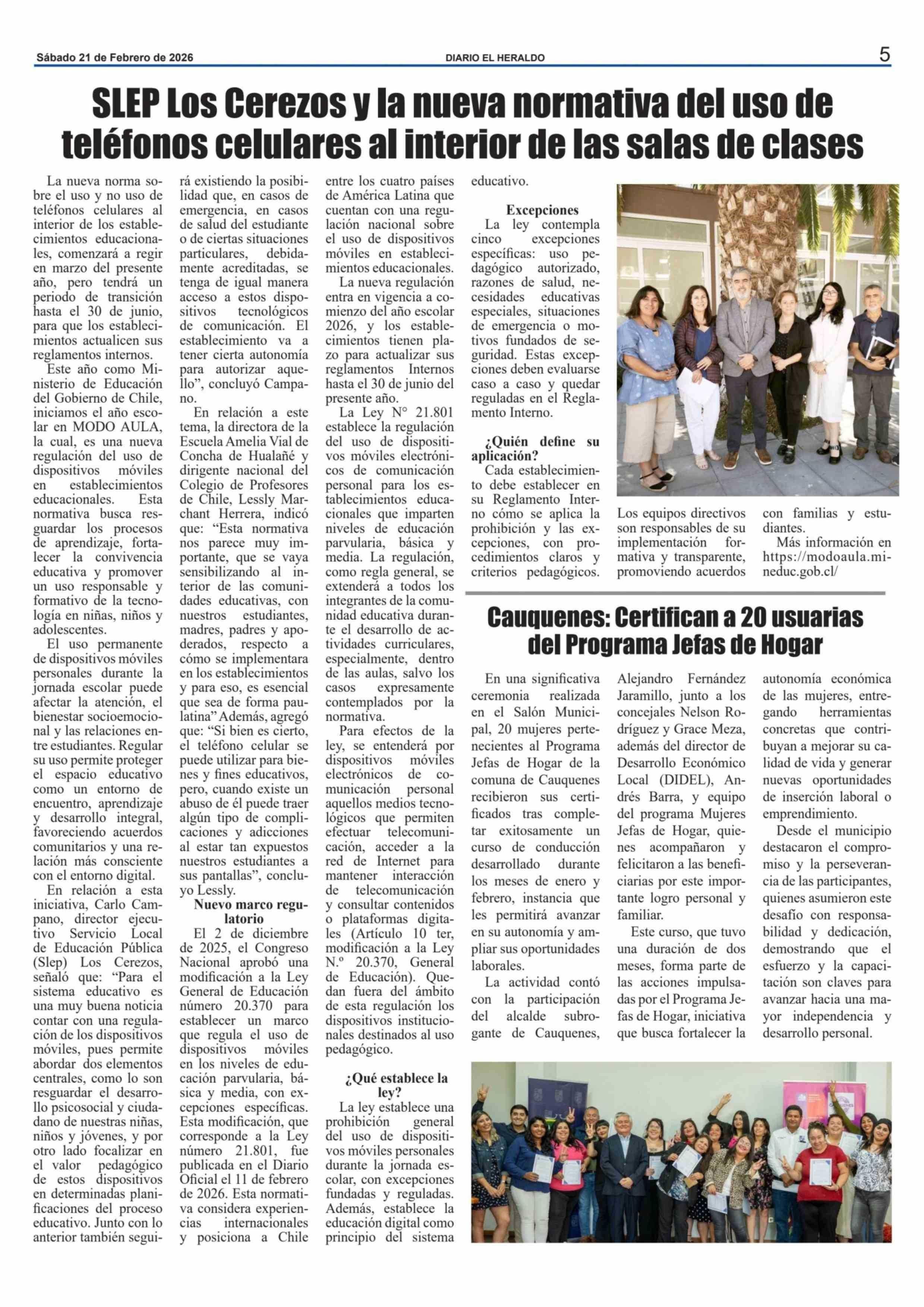 SLEP Los Cerezos y la nueva normativa del uso de teléfonos celulares al interior de las salas de clases 21-02-2026 El Heraldo |