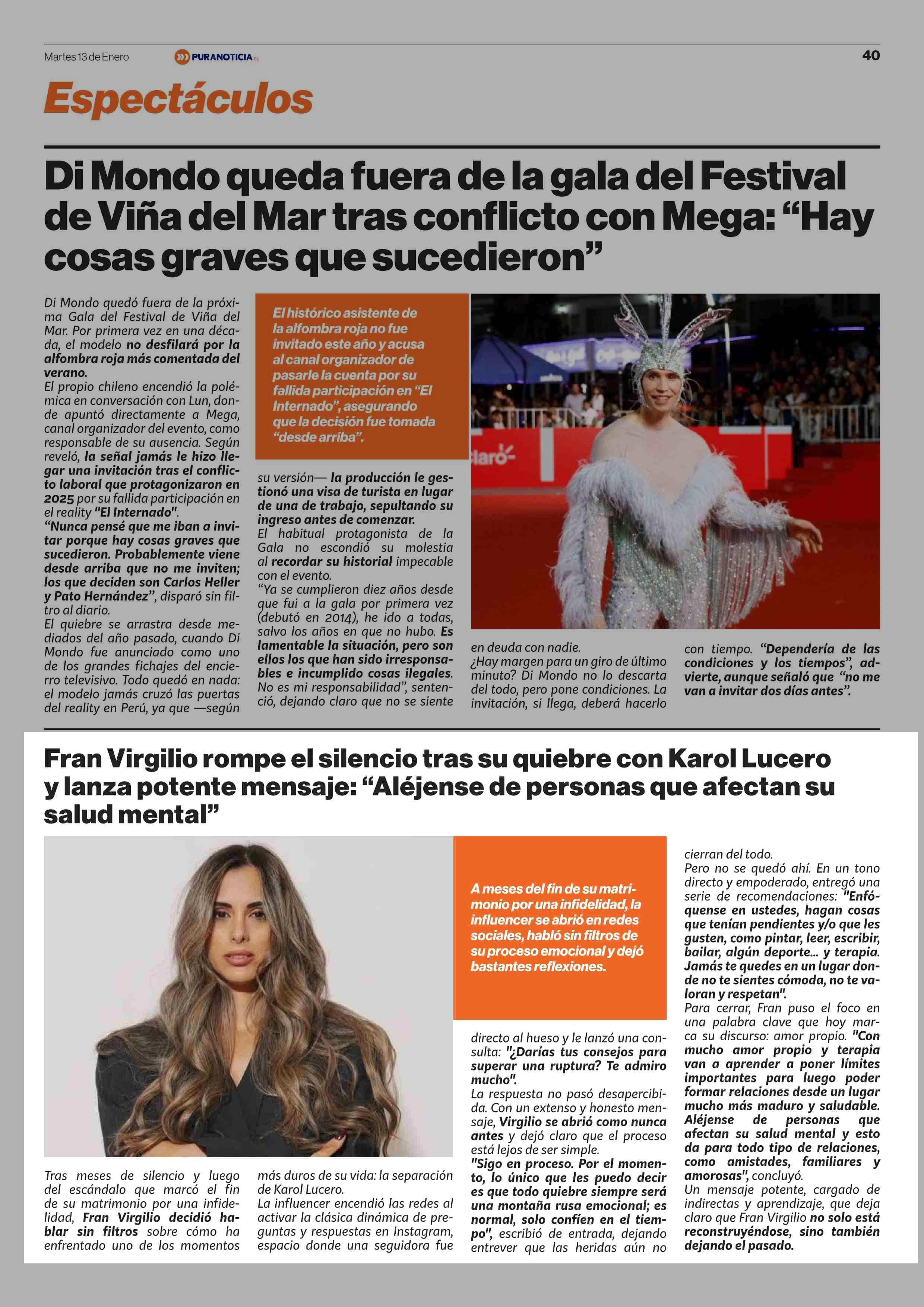 Fuente: Puranoticia.cl (Puranoticia.cl) Página(s): 40