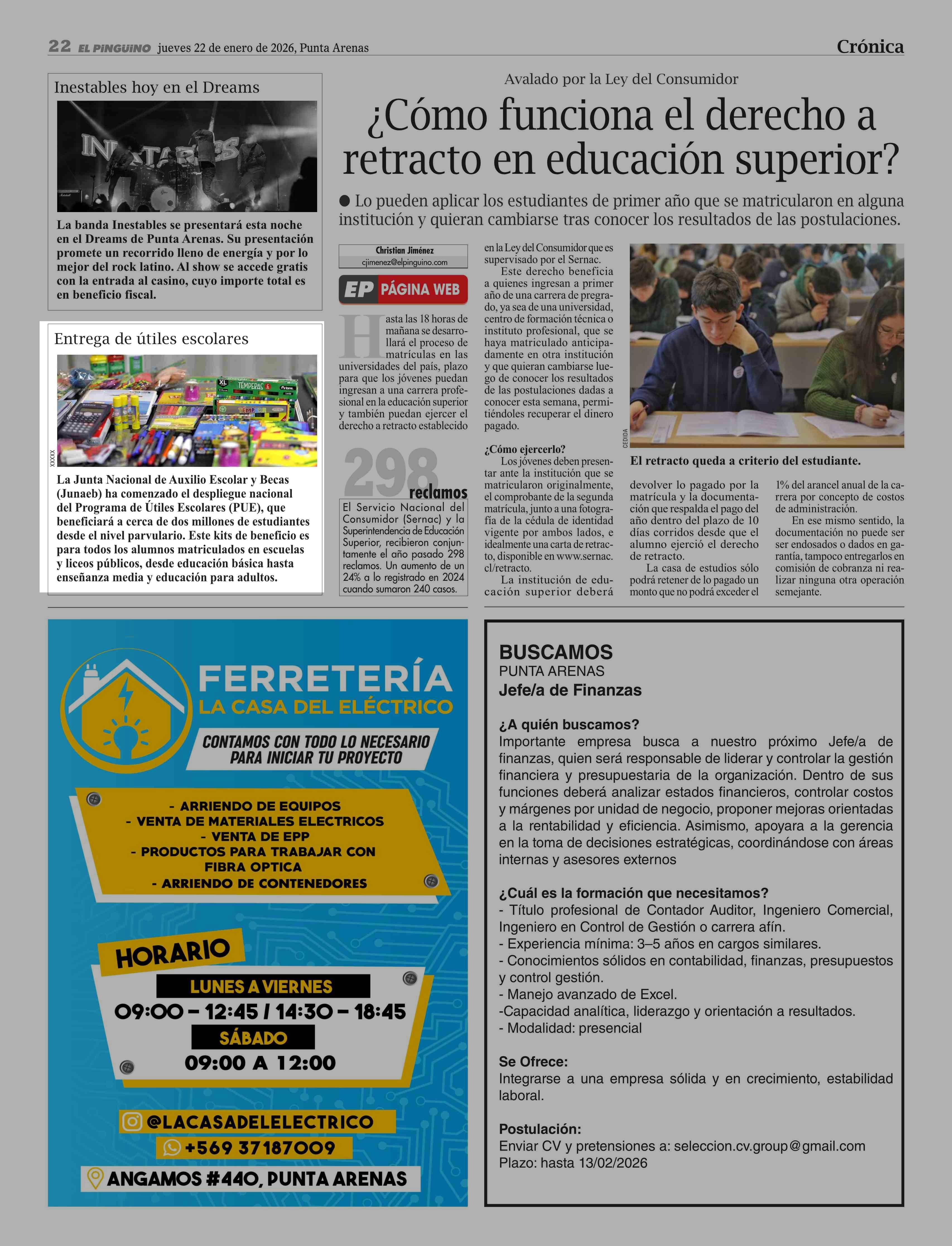 Fecha: 22-01-2026 Sector: Noticia general Región: Región de Magallanes y de la Antártica Chilena