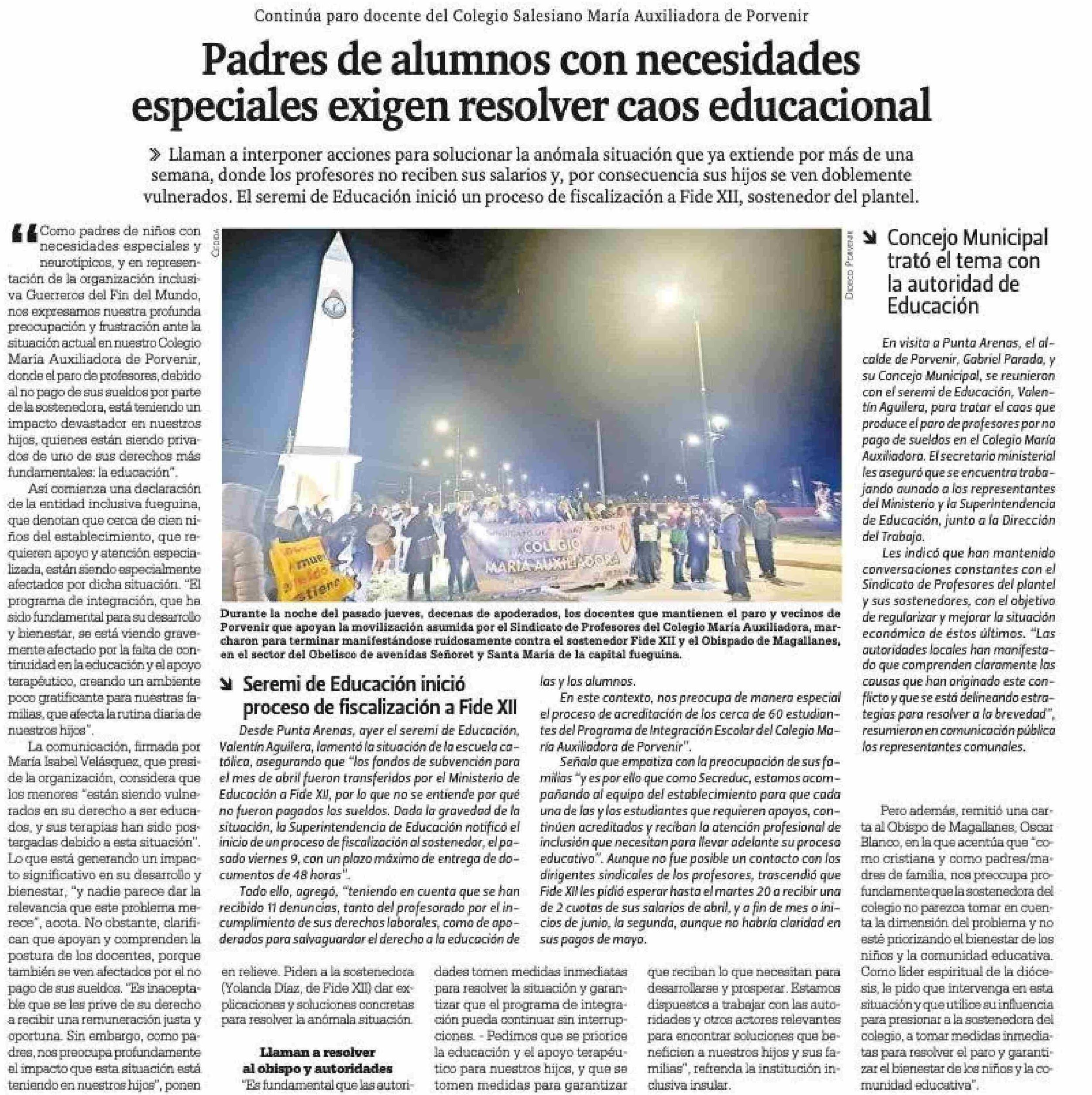 Padres de alumnos con necesidades especiales exigen resolver caos educacional 13-05-2025 La Prensa Austral |