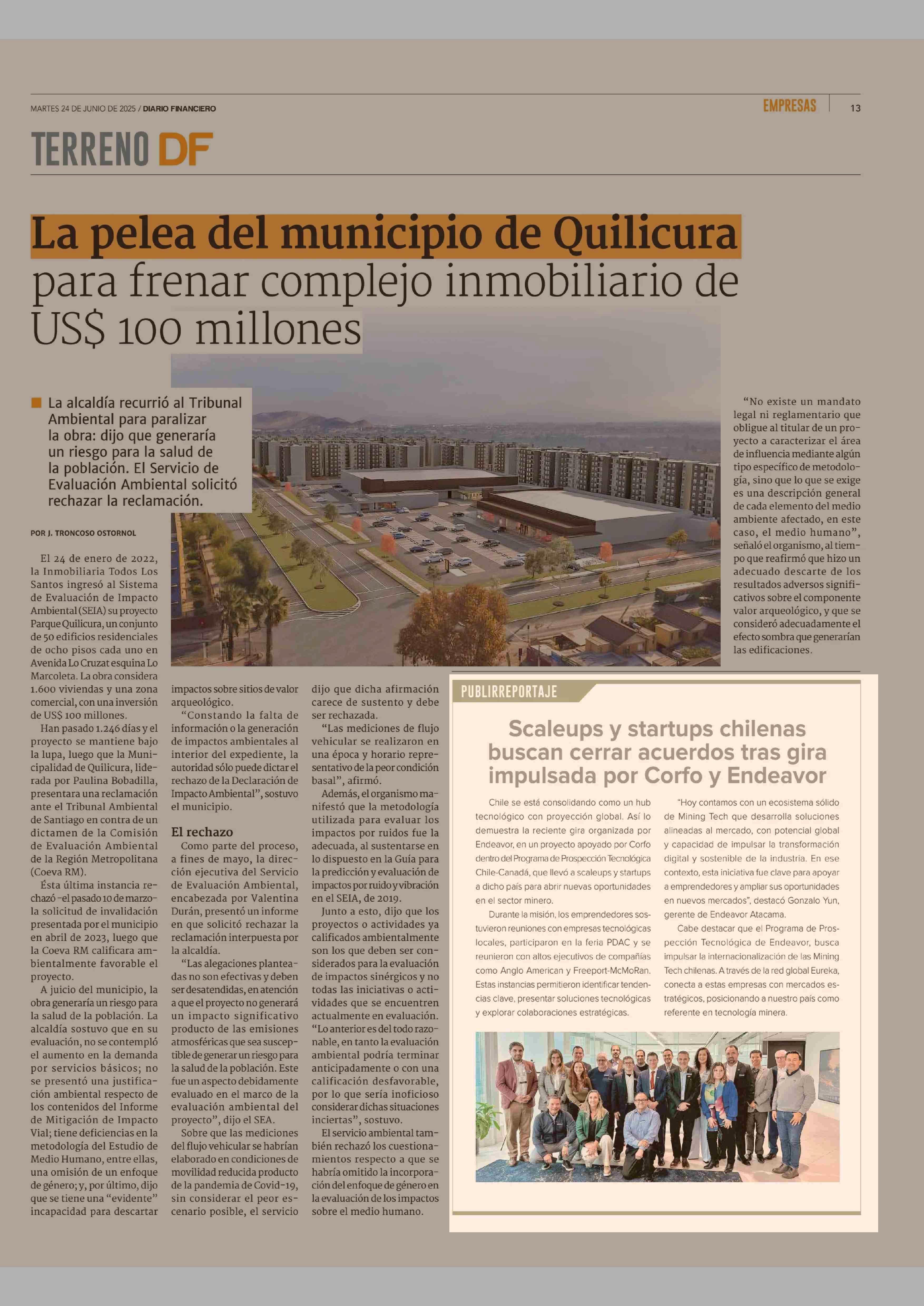 Scaleups y startups chilenas buscan cerrar acuerdos tras gira impulsada por Corfo y Endeavor 24-06-2025 Diario Financiero |