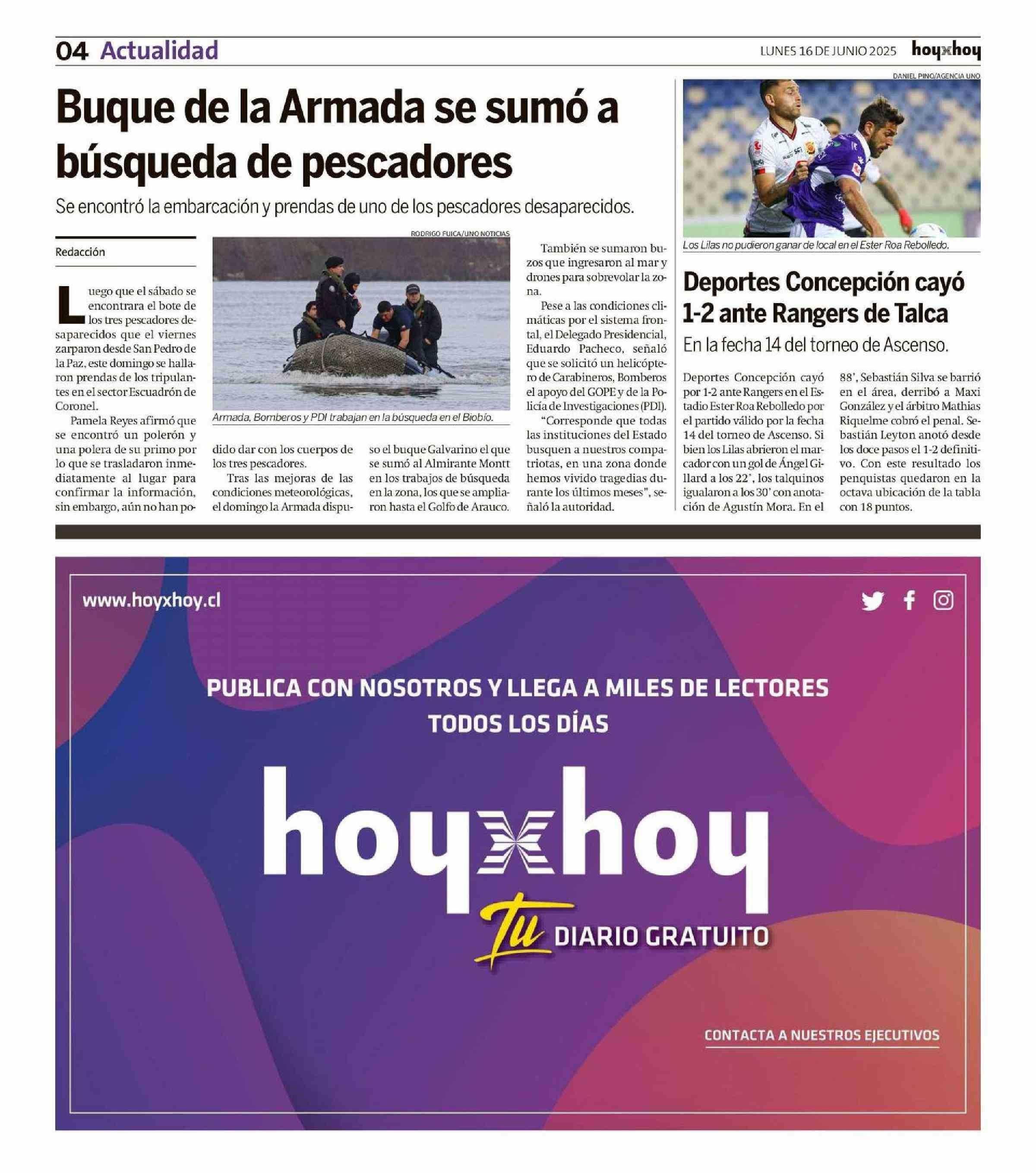 | Fuente: | Hoy x Hoy Concepción (Hoy x Hoy Concepción) | Página(s): | 4 |