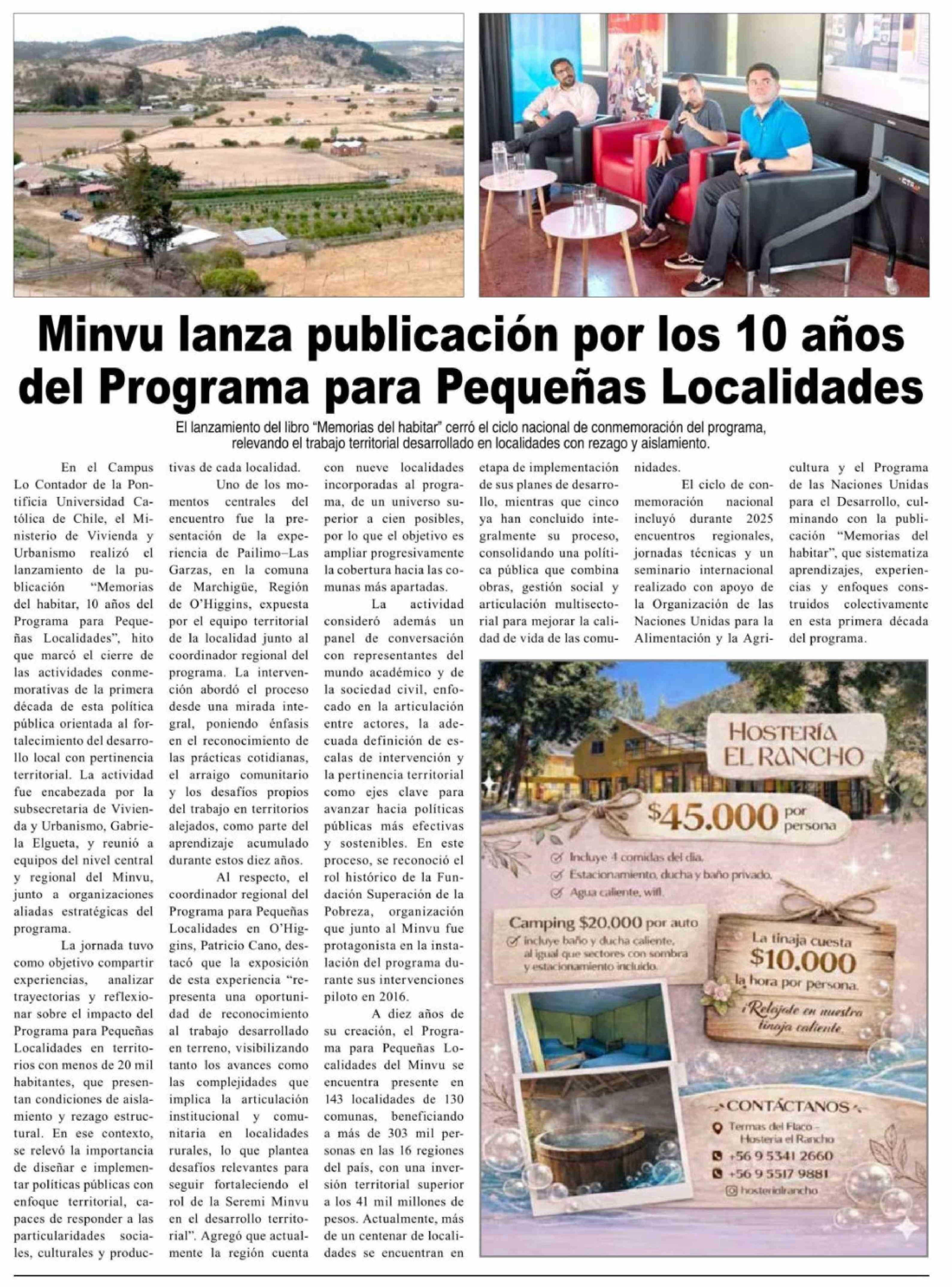Título: Minvu lanza publicación por los 10 años del Programa para Pequeñas Localidades