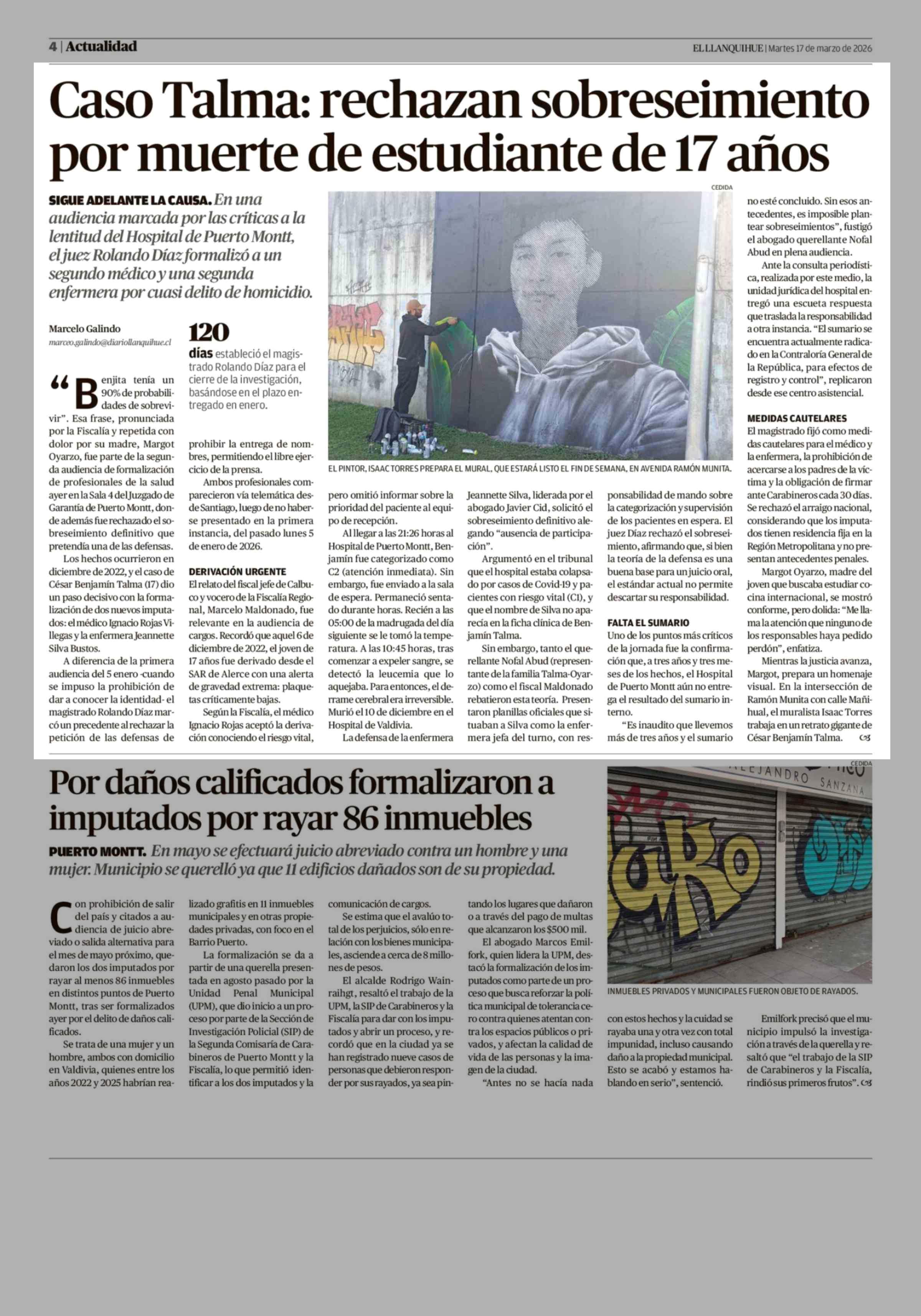 Caso Talma: rechazan sobreseimiento por muerte de estudiante de 17 años 17-03-2026 El Llanquihue |
