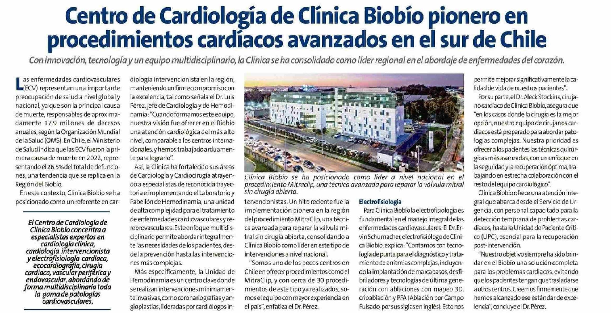 Título: Centro de Cardiología de Clínica Biobío pionero en procedimientos cardiacos avanzados en el sur de Chile
