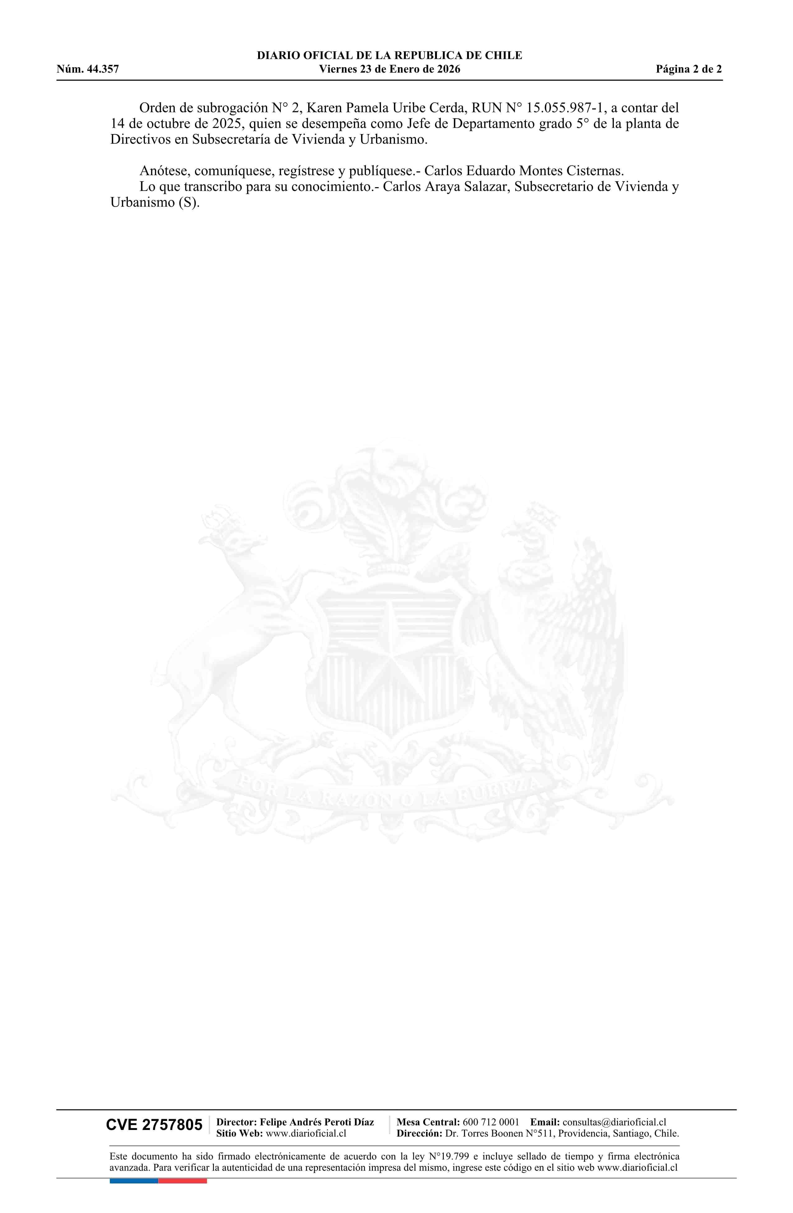 Decreto exento número RA 272/59/2025, de 2025.- Establece orden de subrogación 23-01-2026 DIARIO OFICIAL CHILE - BOLETÍN OFICIAL DE MINERÍA |