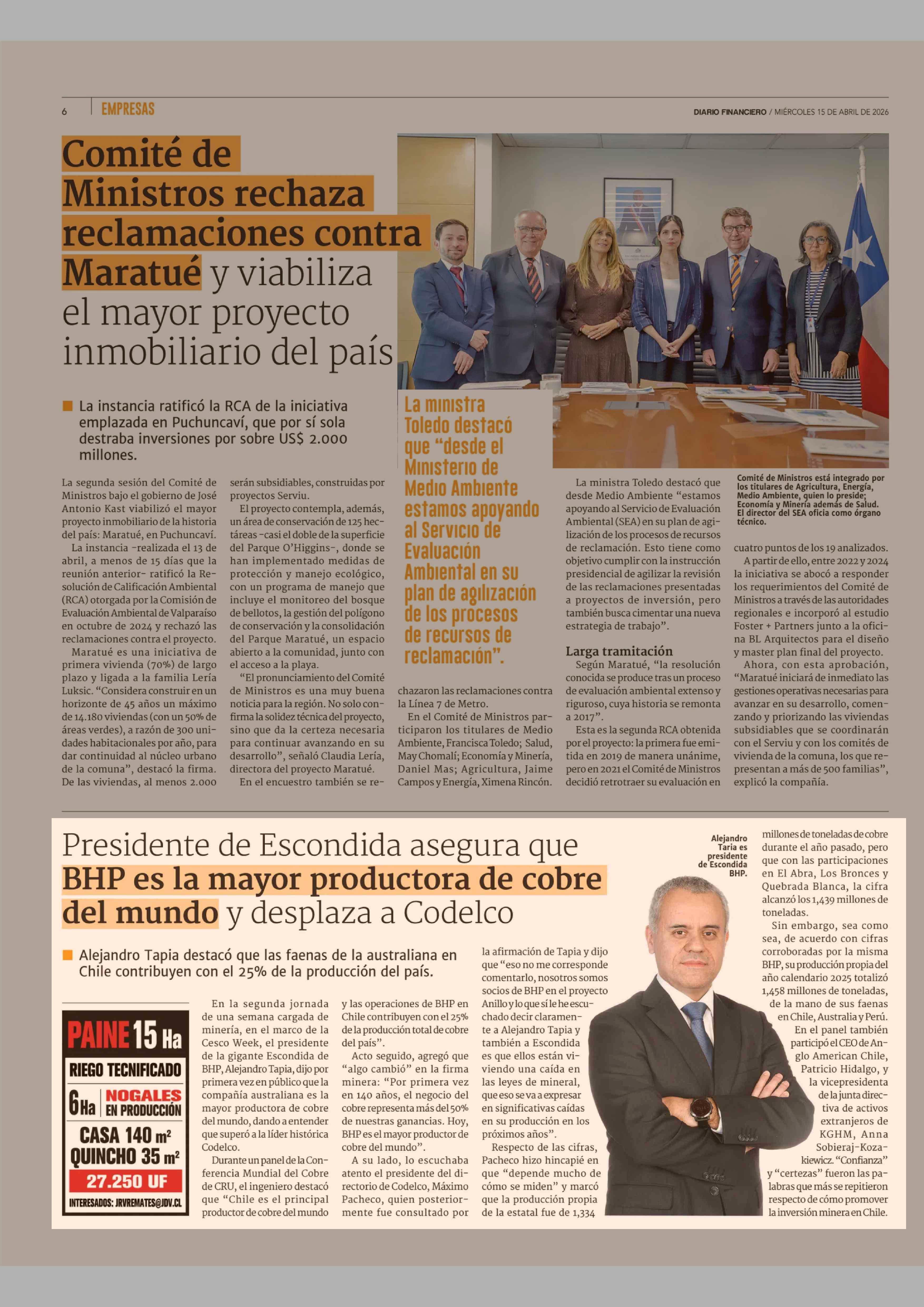 Fuente: Diario Financiero (Diario Financiero) Página(s): 6