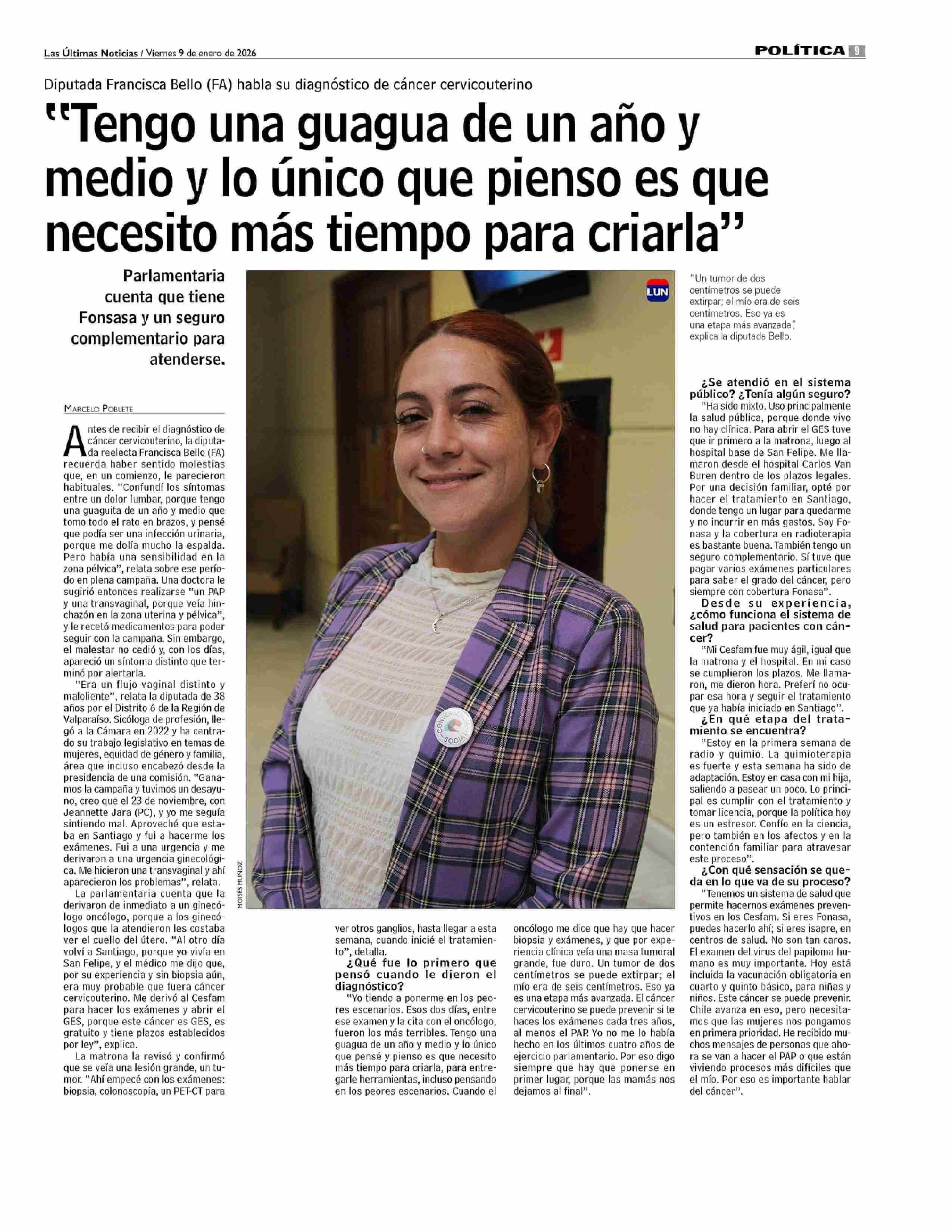 "Tengo una guagua de un año y medio y lo único que pienso es que necesito más tiempo para criarla" 09-01-2026 Las Últimas Noticias |