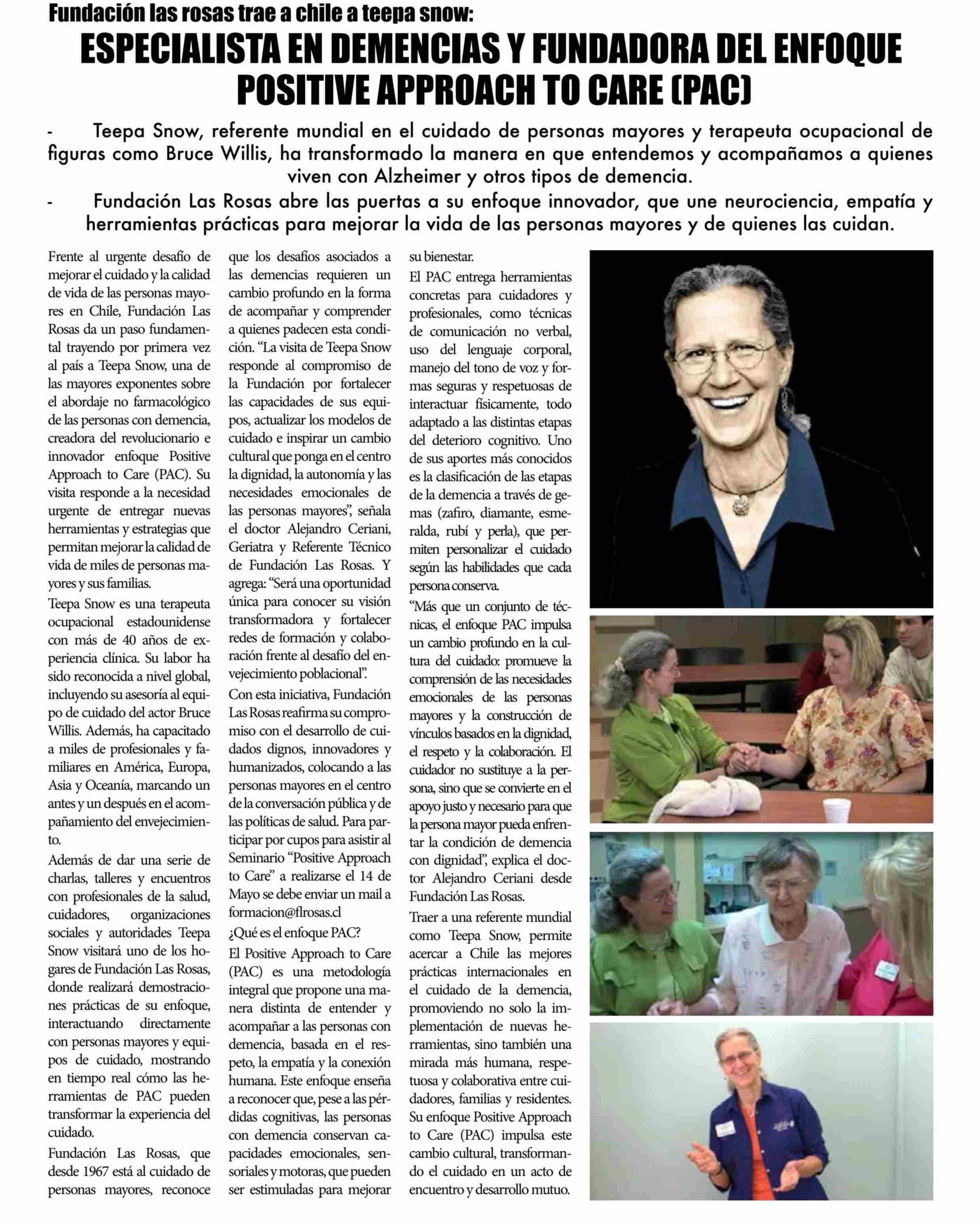 ESPECIALISTA EN DEMENCIAS Y FUNDADORA DEL ENFOQUE POSITIVE APPROACH TO CARE (PAC) 10-05-2025 El Lector |