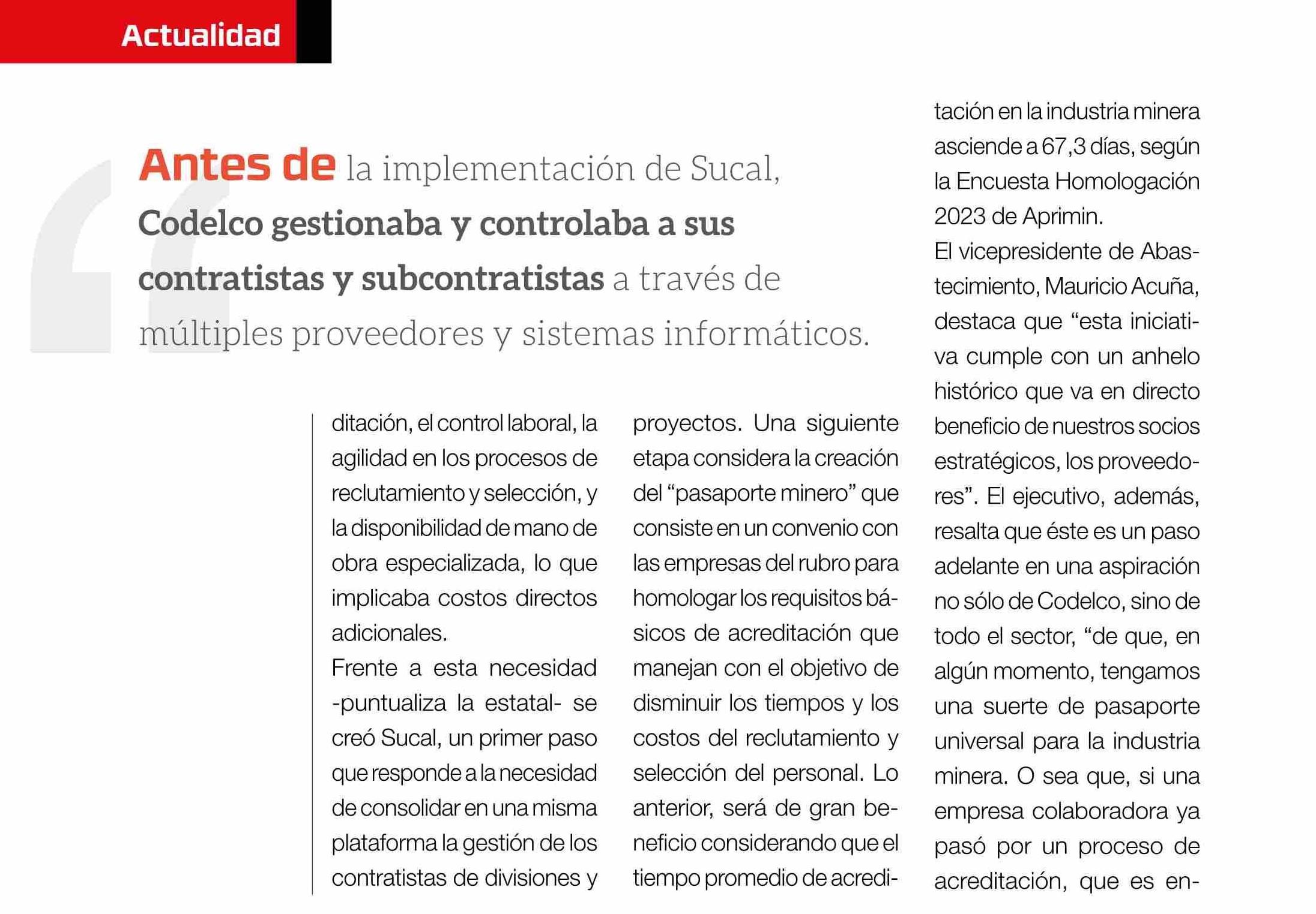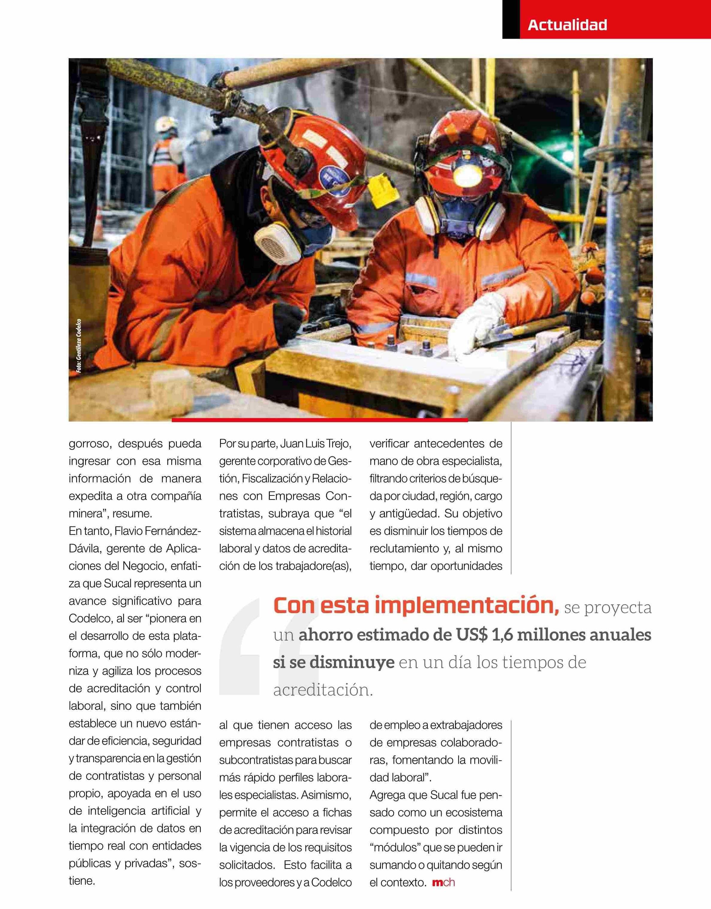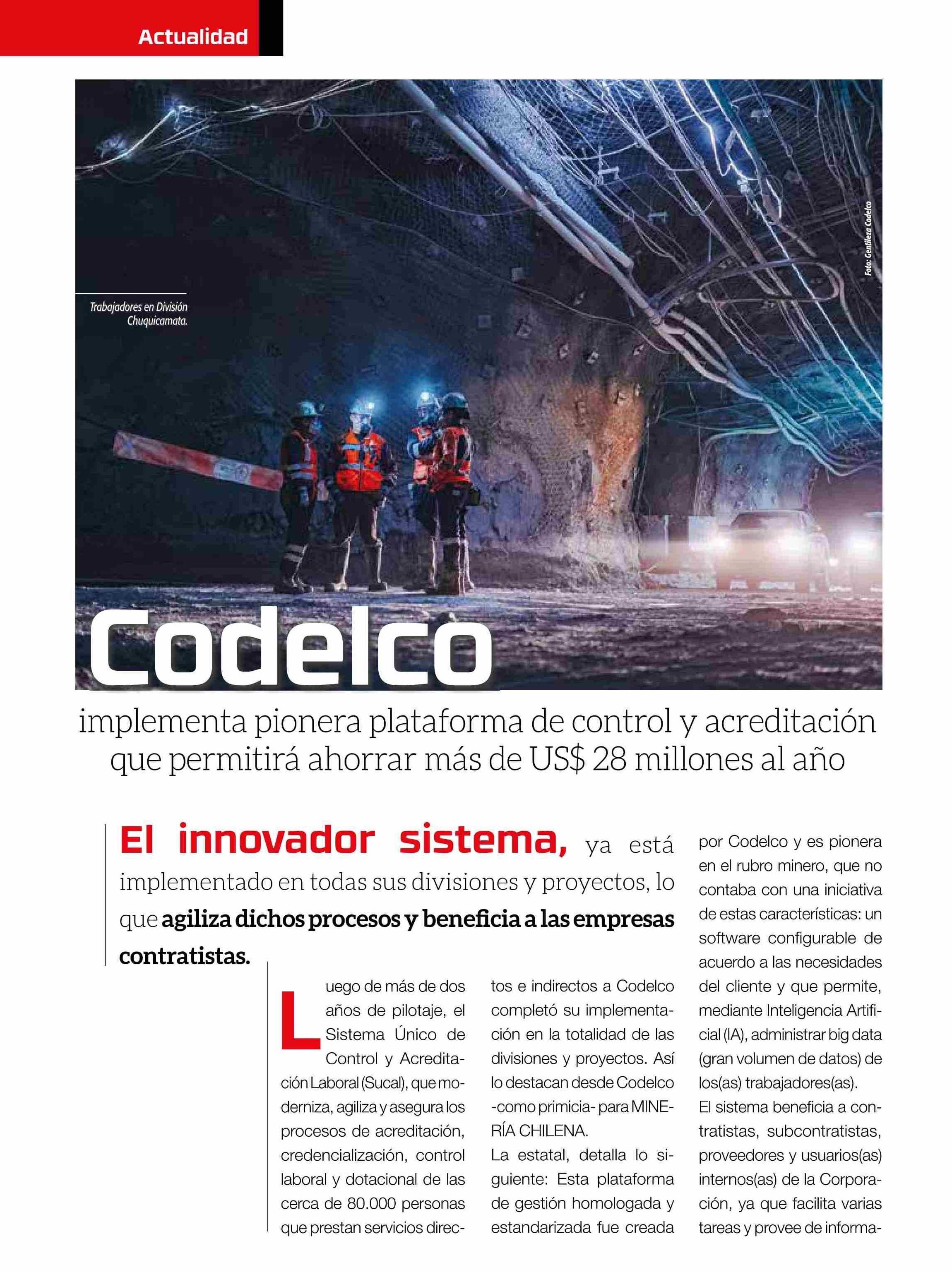 | Título: | CODELCO implementa pionera plataforma de control y acreditación que permitirá ahorrar más de US$28 millones al año |