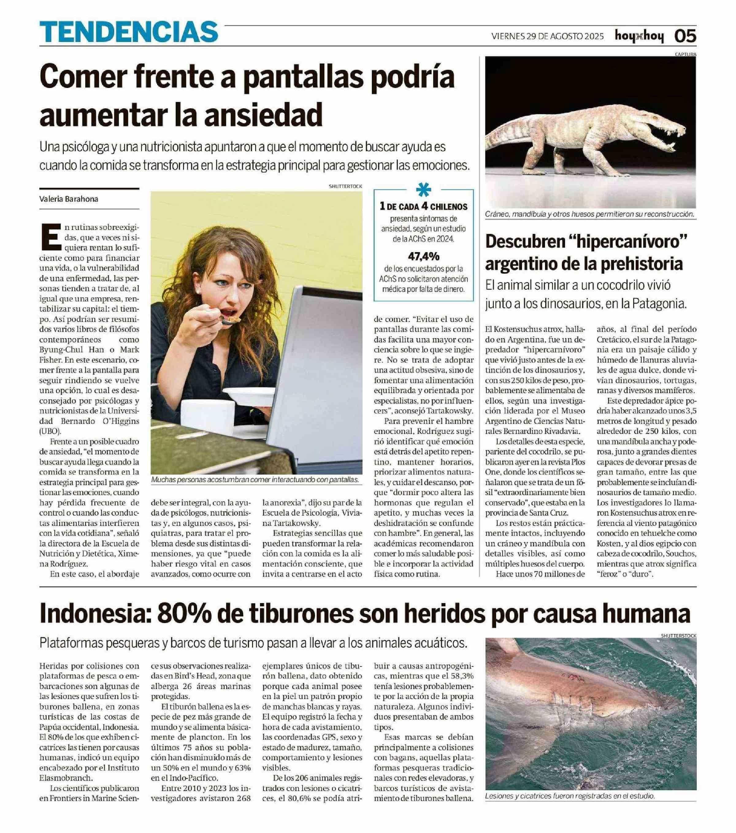 Comer frente a pantallas podría aumentar la ansiedad 29-08-2025 Hoy x Hoy |