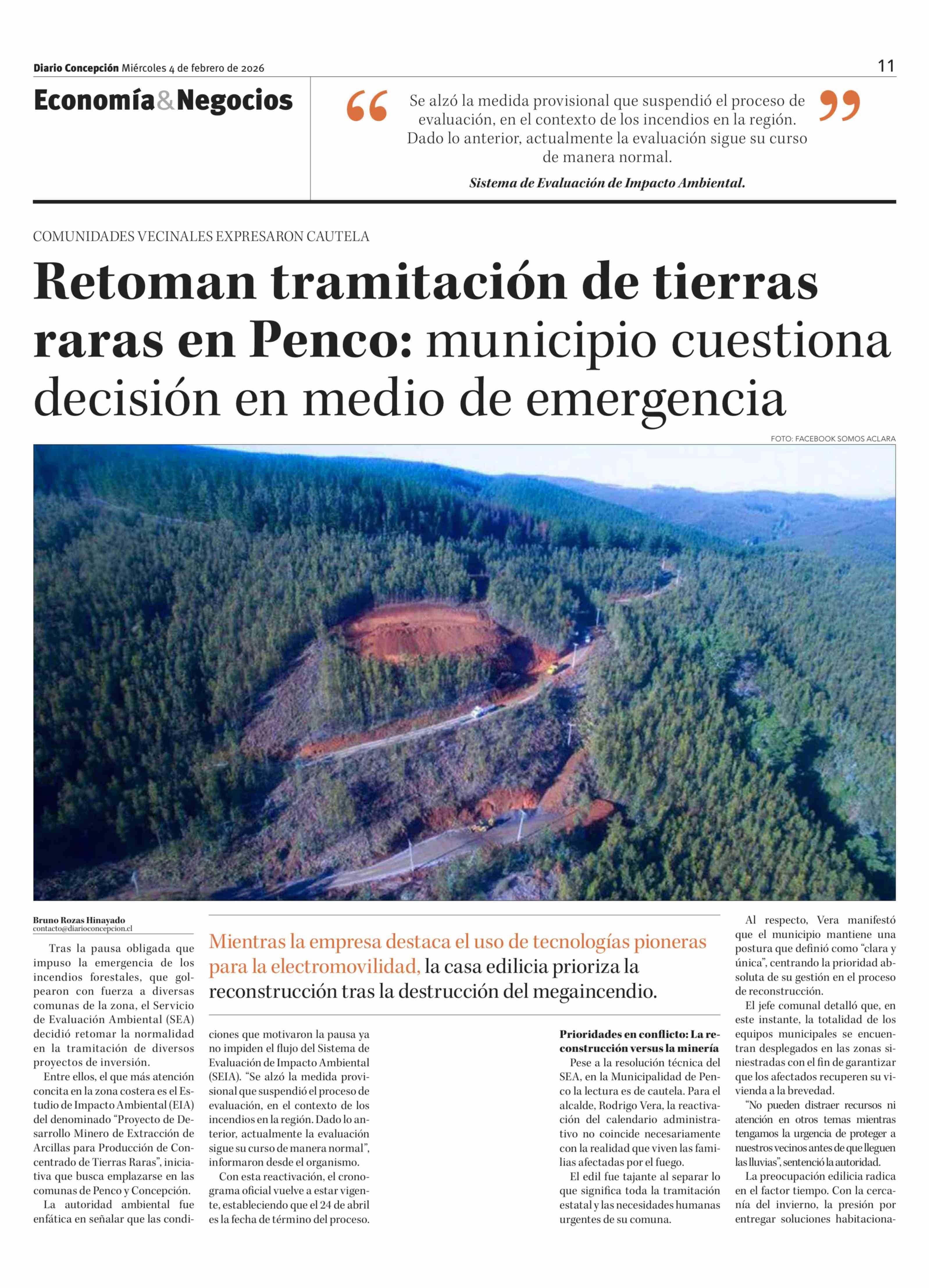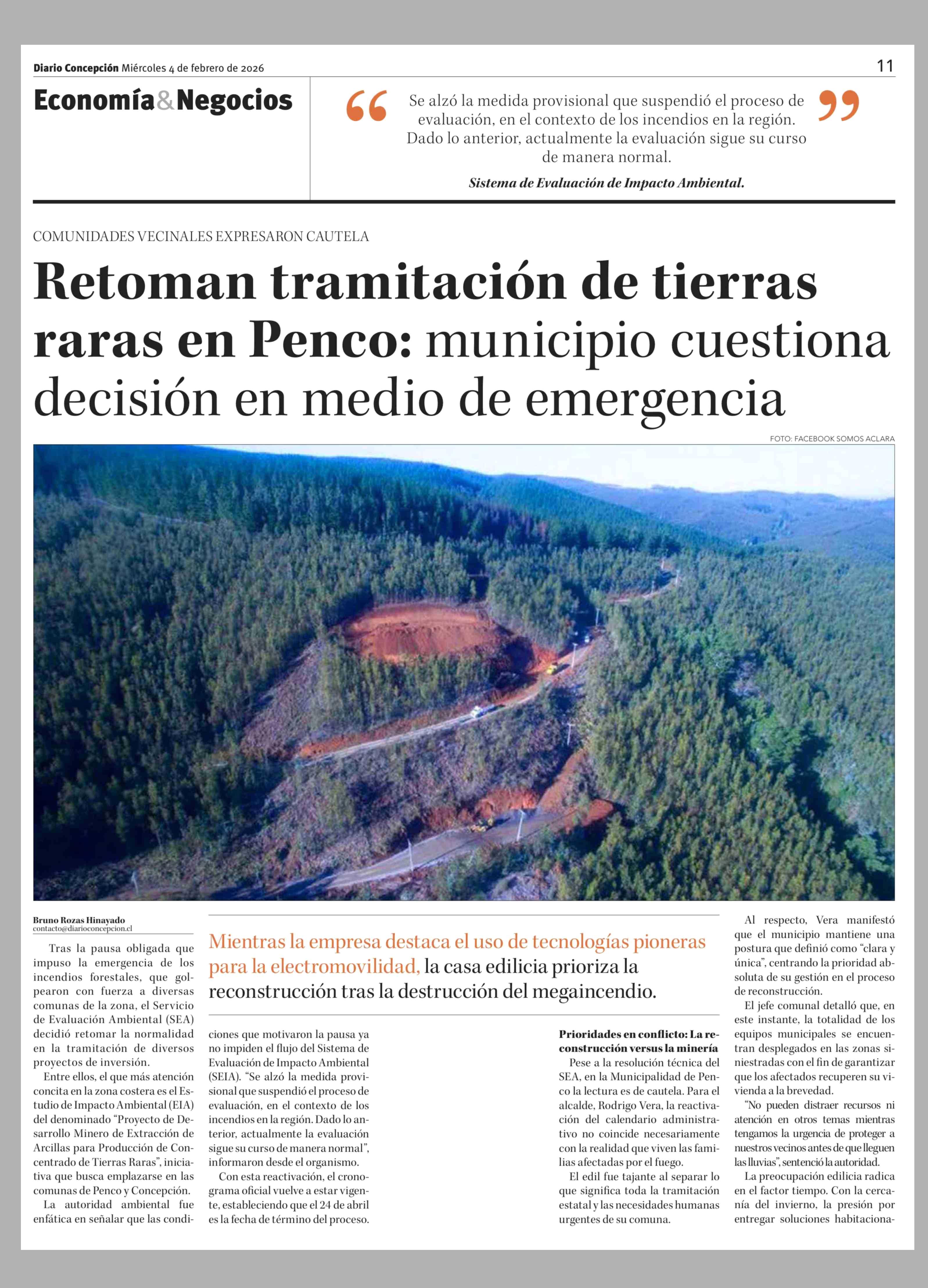 Título: Retoman tramitación de tierras raras en Penco: municipio cuestiona decisión en medio de emergencia