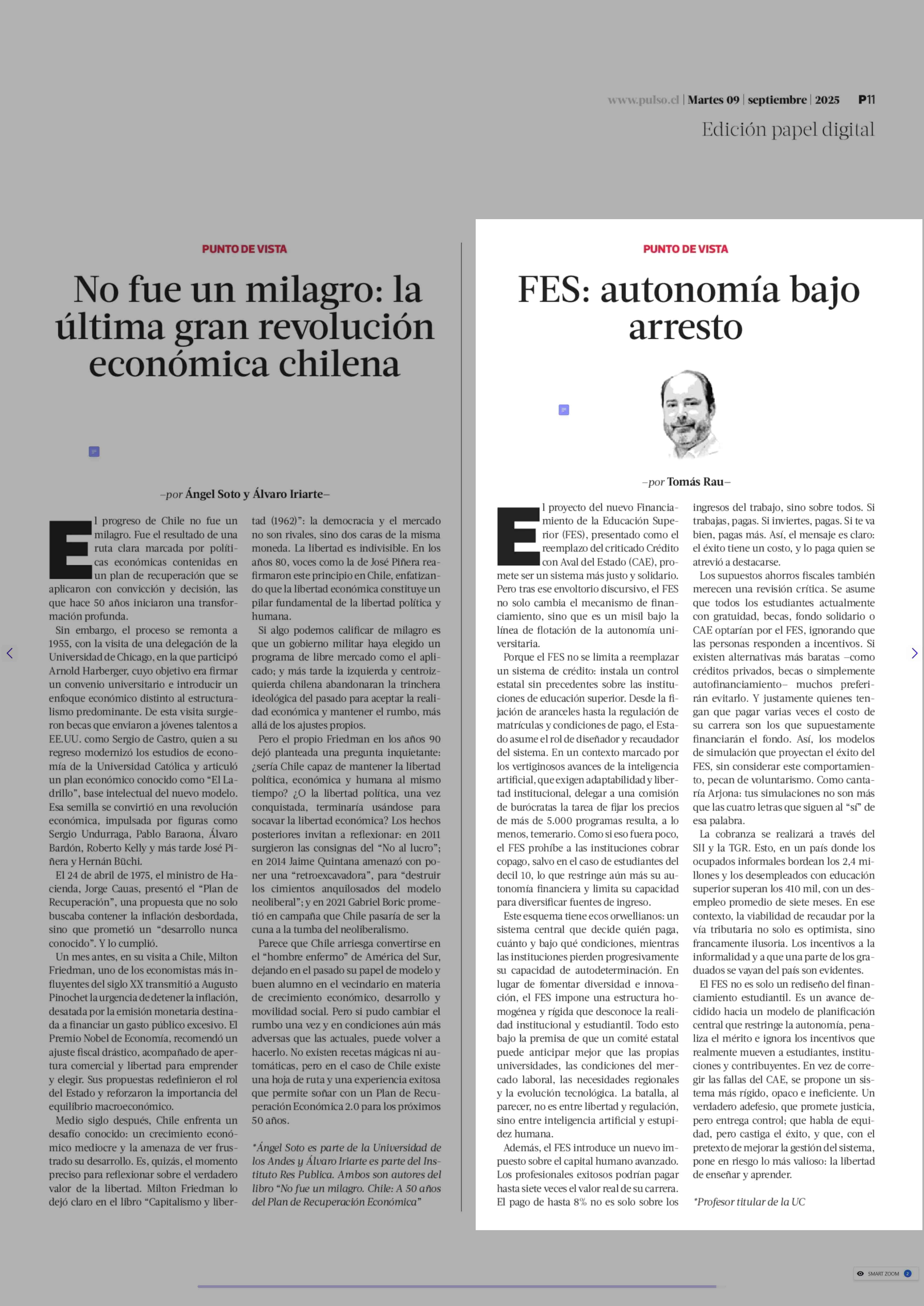 COLUMNAS DE OPINIÓN: FES: autonomía bajo arresto 09-09-2025 La Tercera |