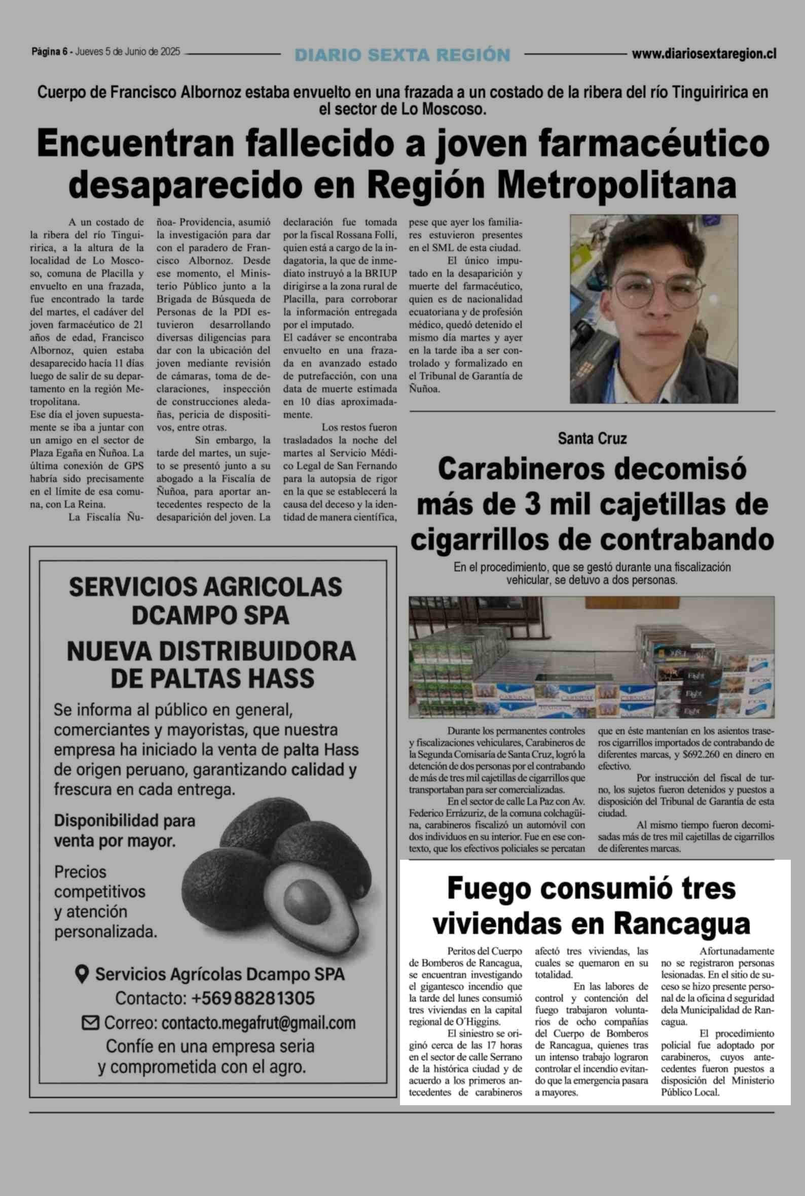 | Fecha: | 05-06-2025 | Sector: | Noticia general | Región: | Región del Libertador General Bernardo O'Higgins |