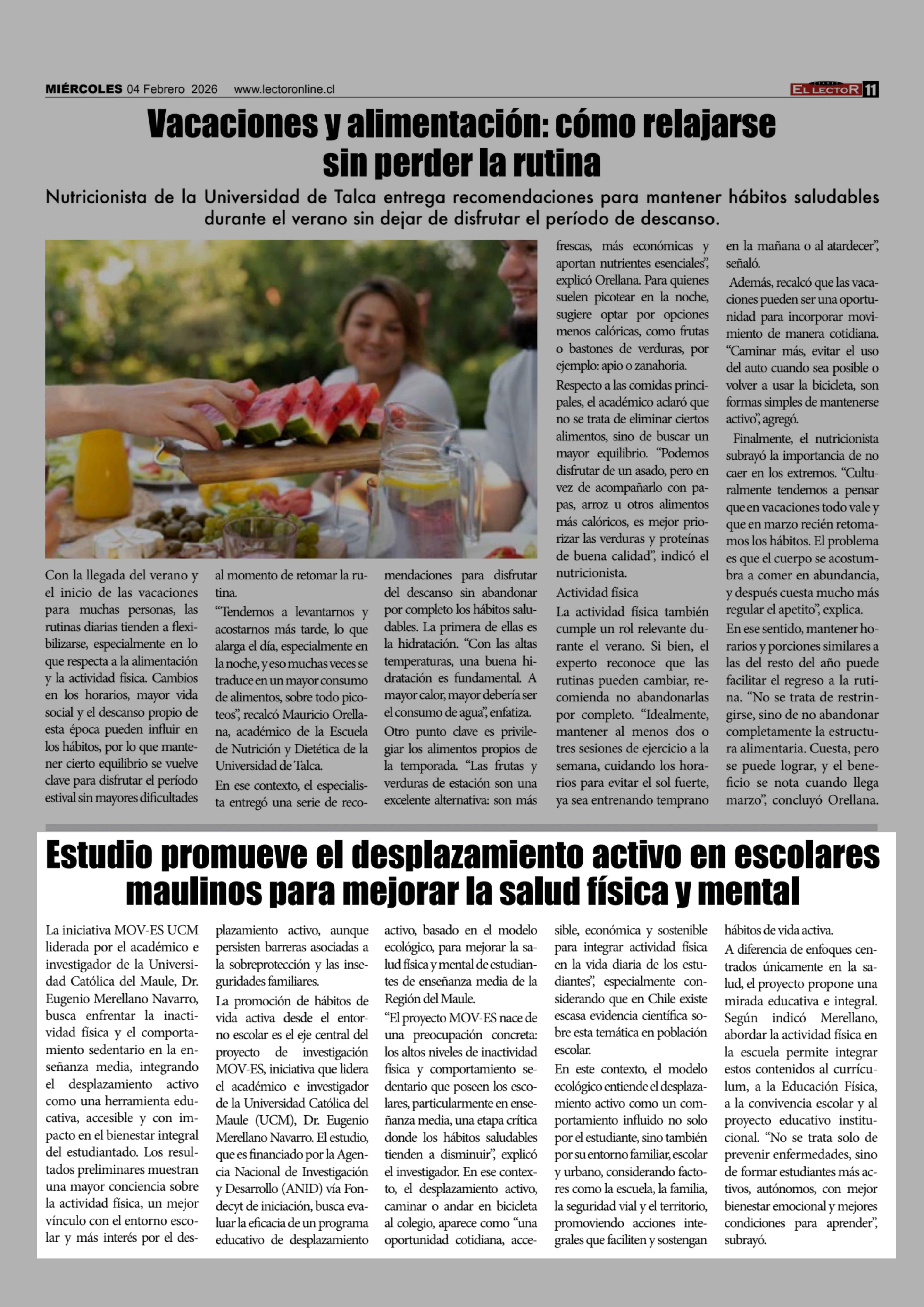 Estudio promueve el desplazamiento activo en escolares maulinos para mejorar la salud física y mental 04-02-2026 El Lector |