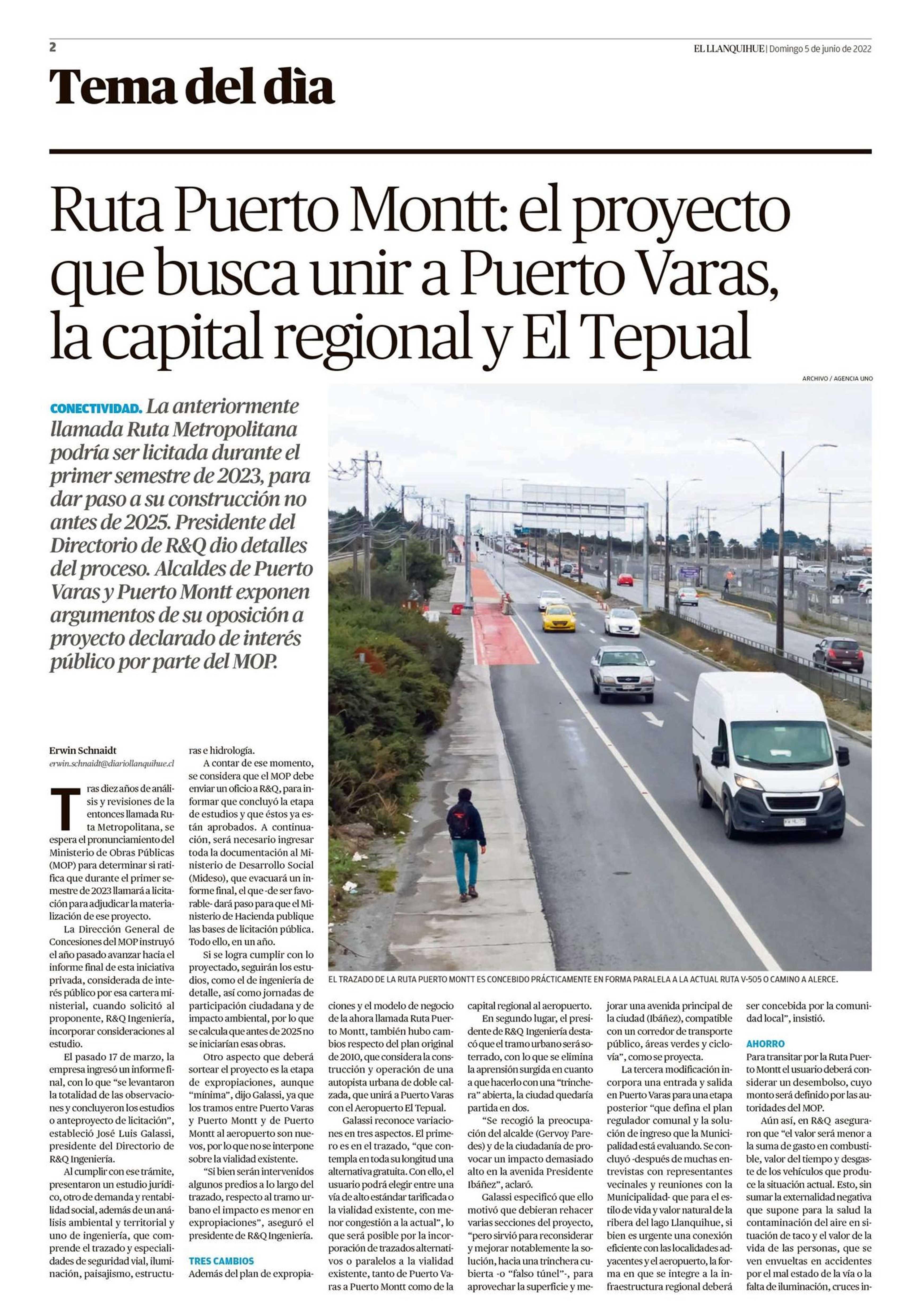 Ruta Puerto Montt: el proyecto que busca unir a Puerto Varas, la capital regional y El Tepual 05-06-2022 El Llanquihue |