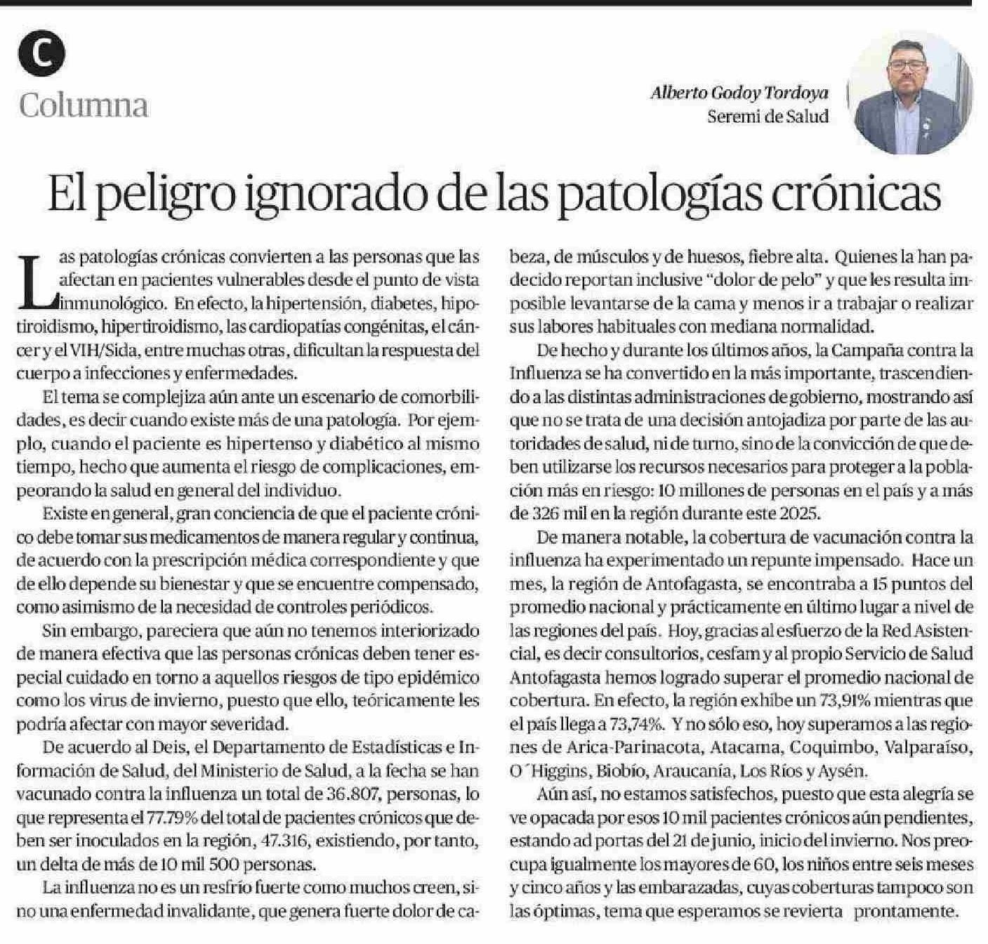 El peligro ignorado de las patologías crónicas 13-06-2025 El Mercurio de Antofagasta |