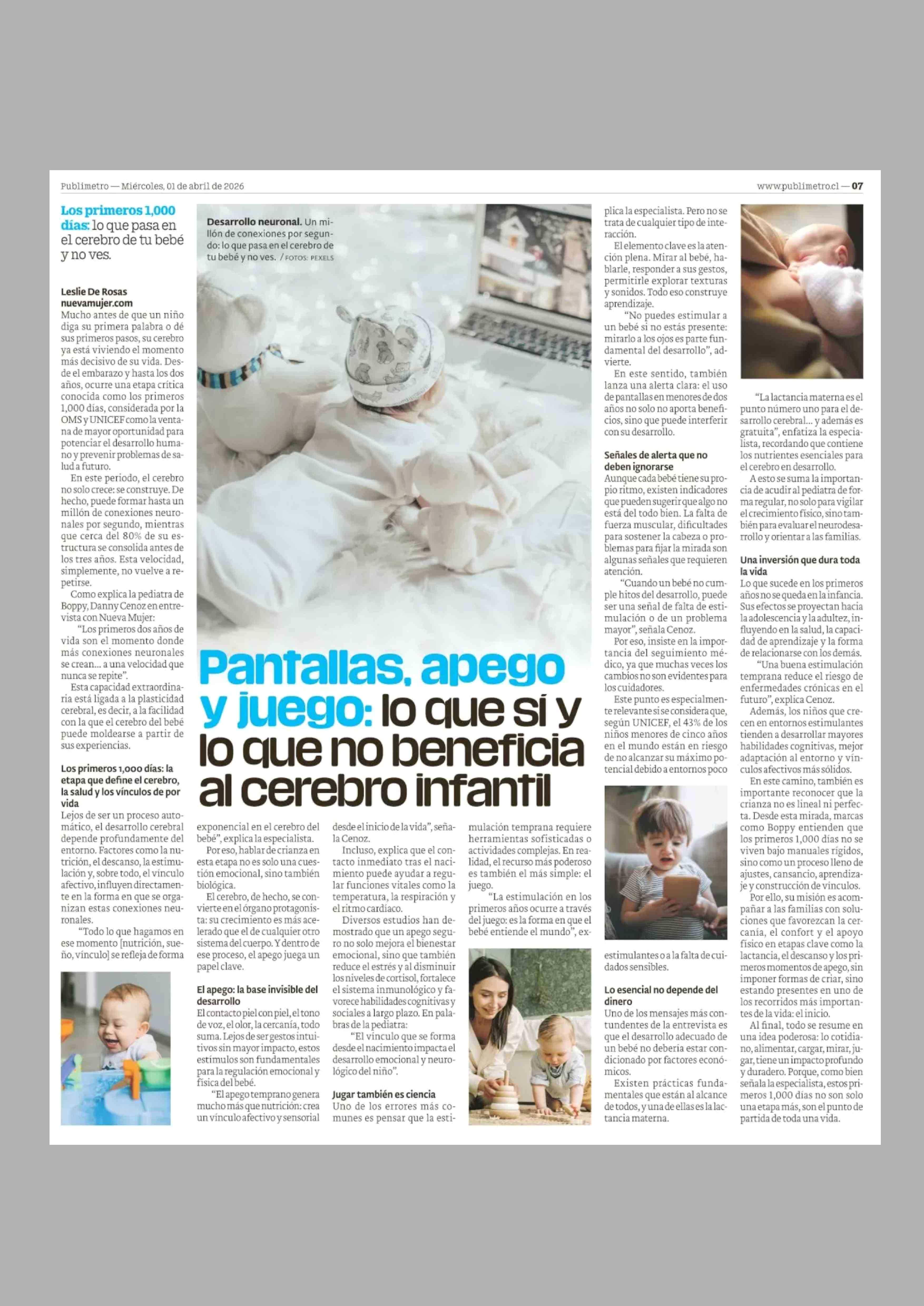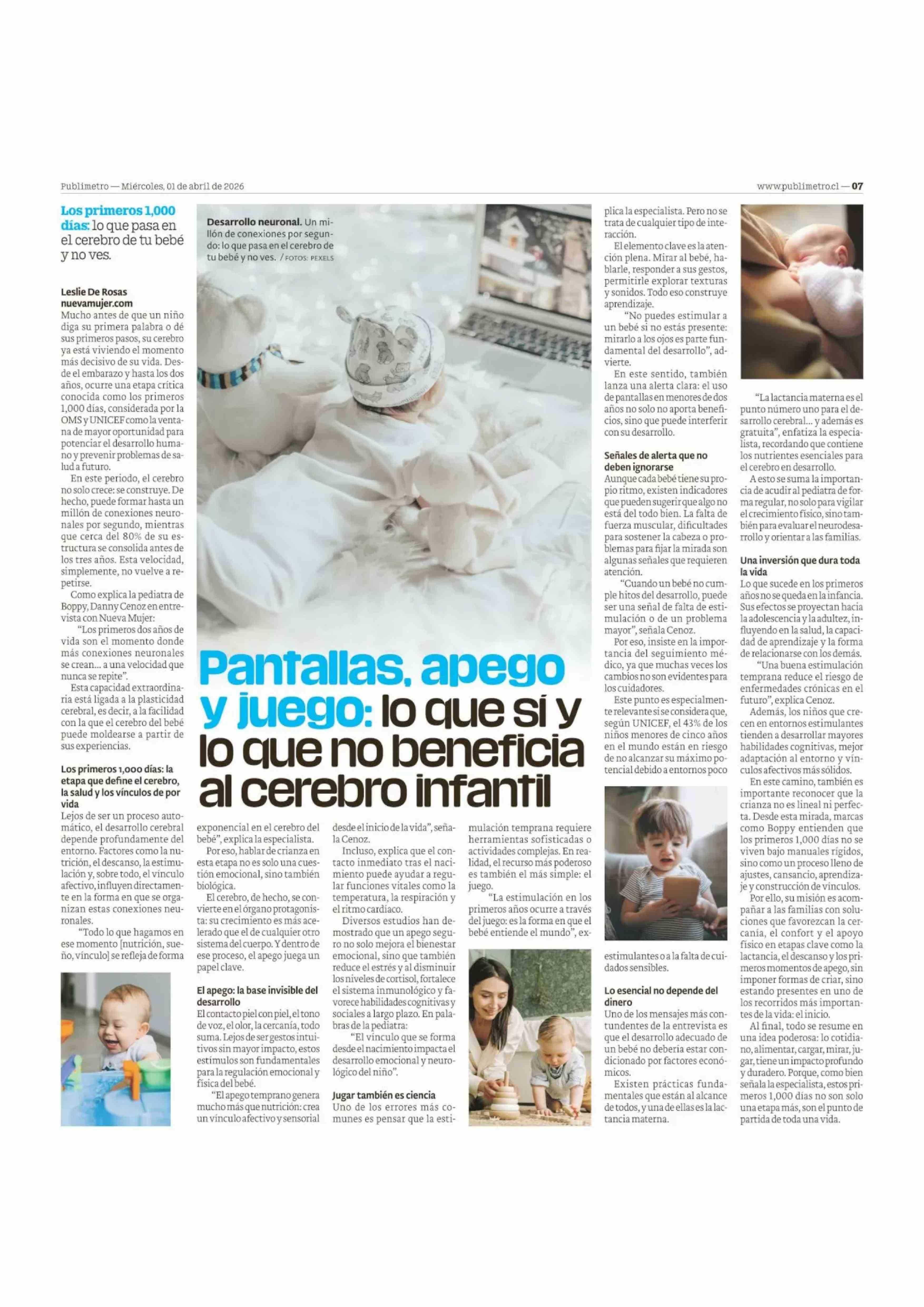 Pantallas, apego y juego: lo que si y lo que no beneficia al cerebro infantil 01-04-2026 Publimetro |