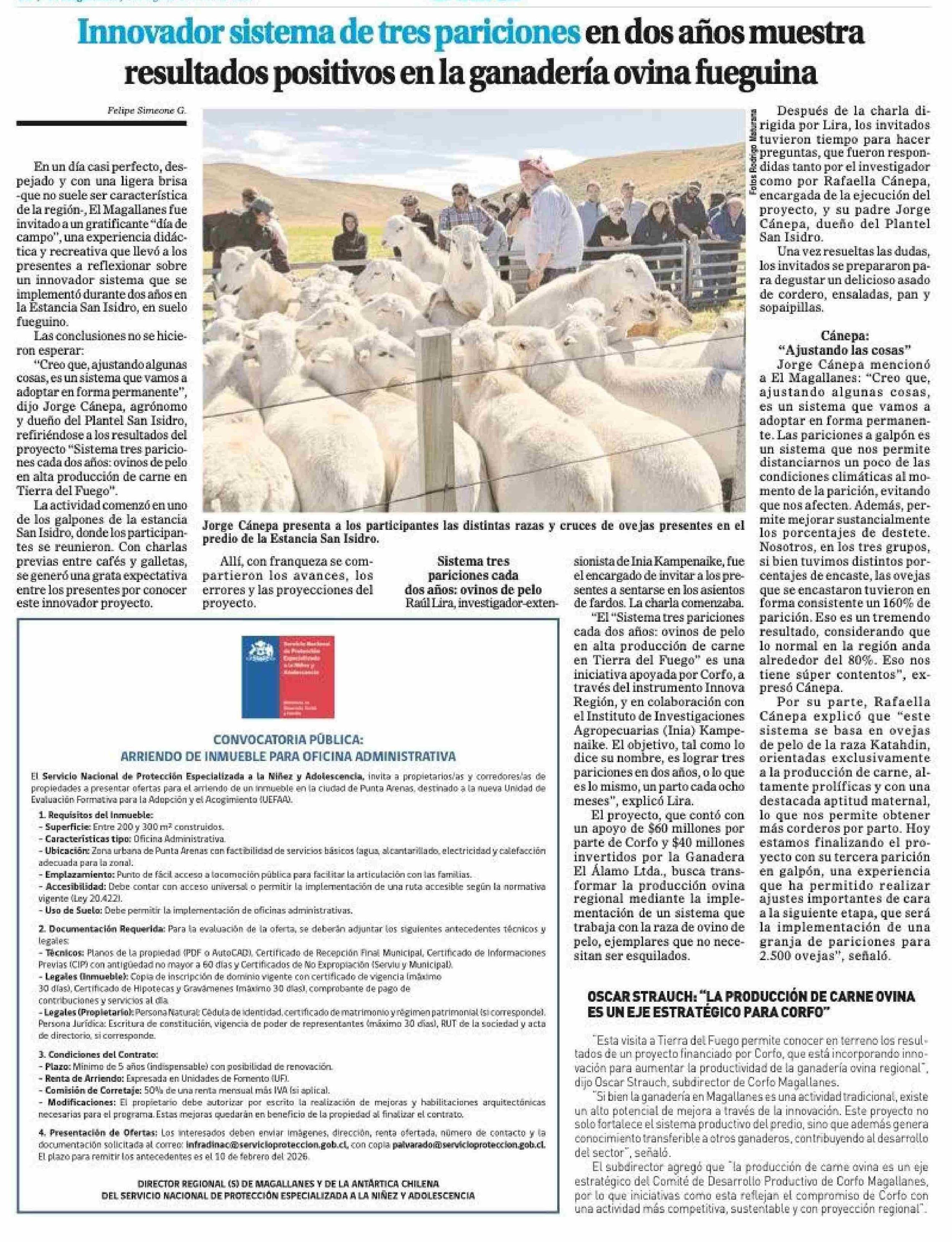 Título: Innovador sistema de tres pariciones en dos años muestra resultados positivos en la ganadería ovina fueguina