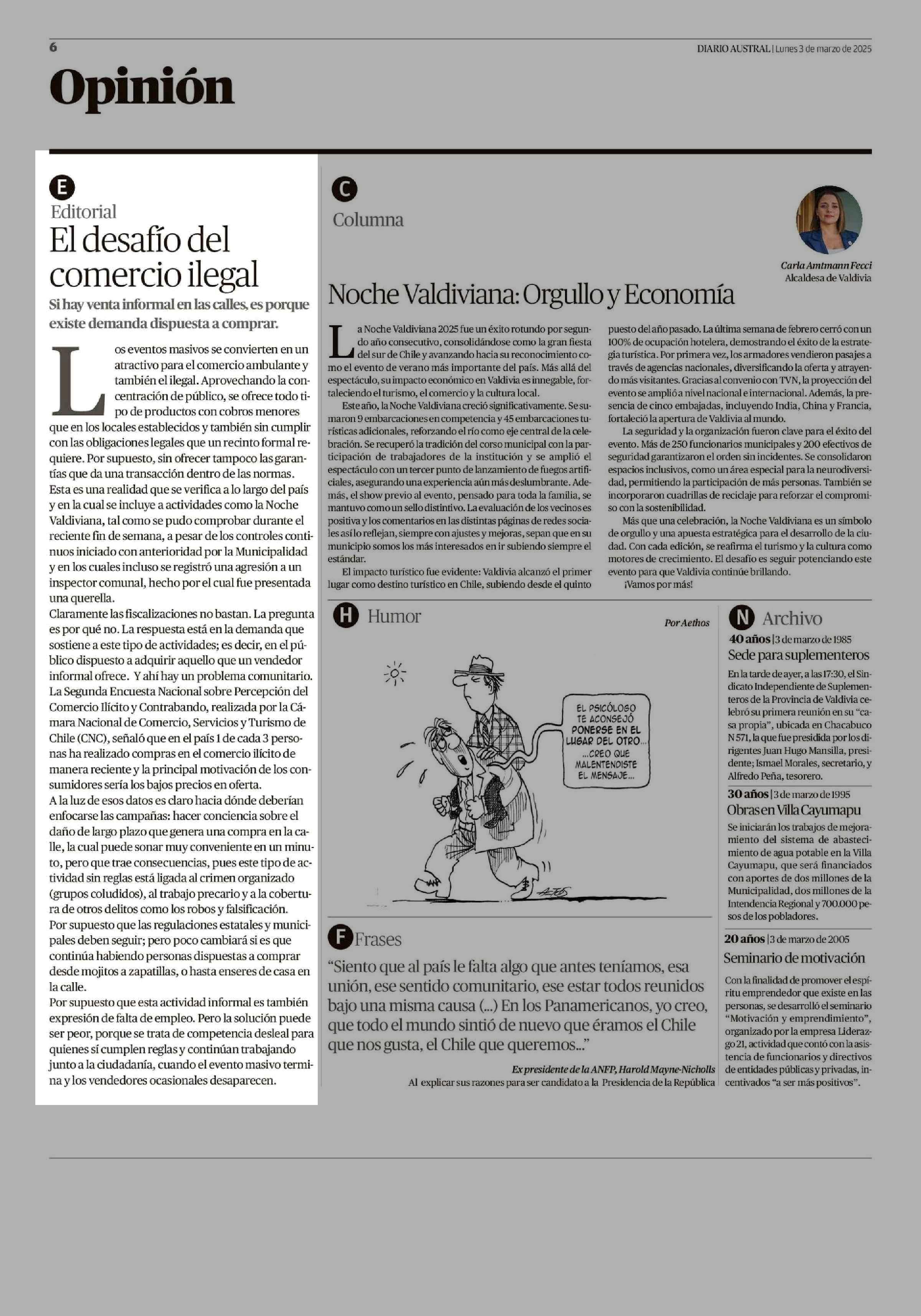 Fuente: Diario Austral Región de Los Ríos (Diario Austral Región de Los Ríos) Página(s): 6