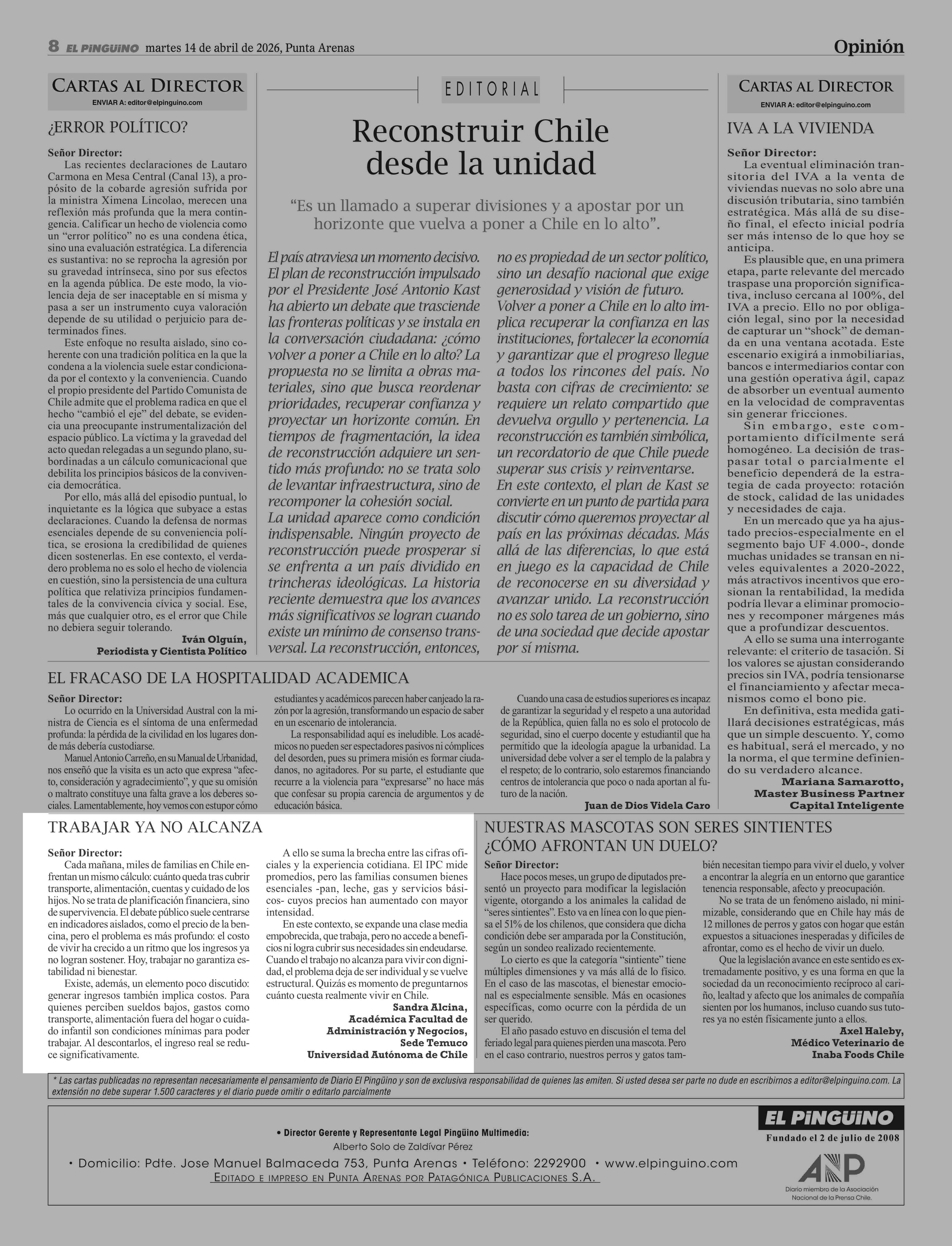 CARTAS: TRABAJAR YA NO ALCANZA 14-04-2026 El Pingüino |