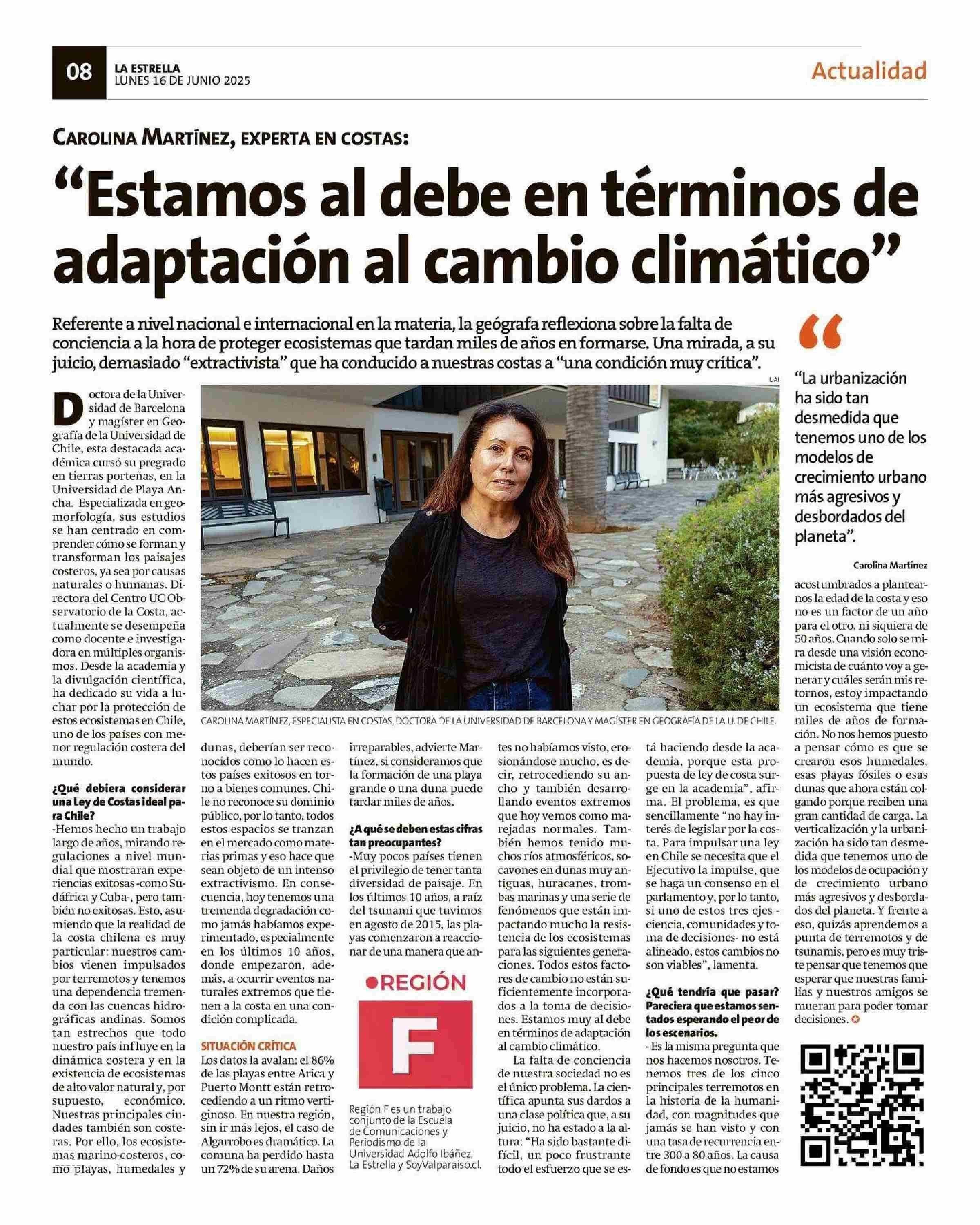 "Estamos al debe en términos de adaptación al cambio climático" 16-06-2025 La Estrella de Valparaíso |