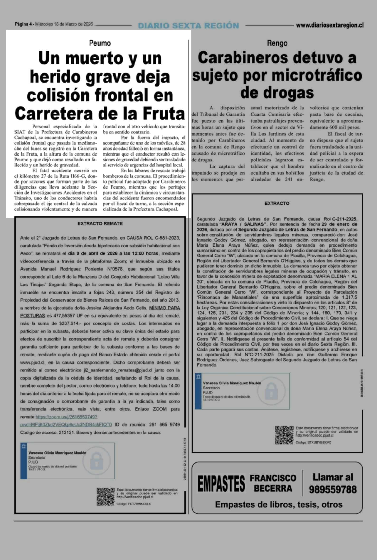 | Fecha: | 18-03-2026 | Sector: | Noticia general | Región: | Región del Libertador General Bernardo O'Higgins |