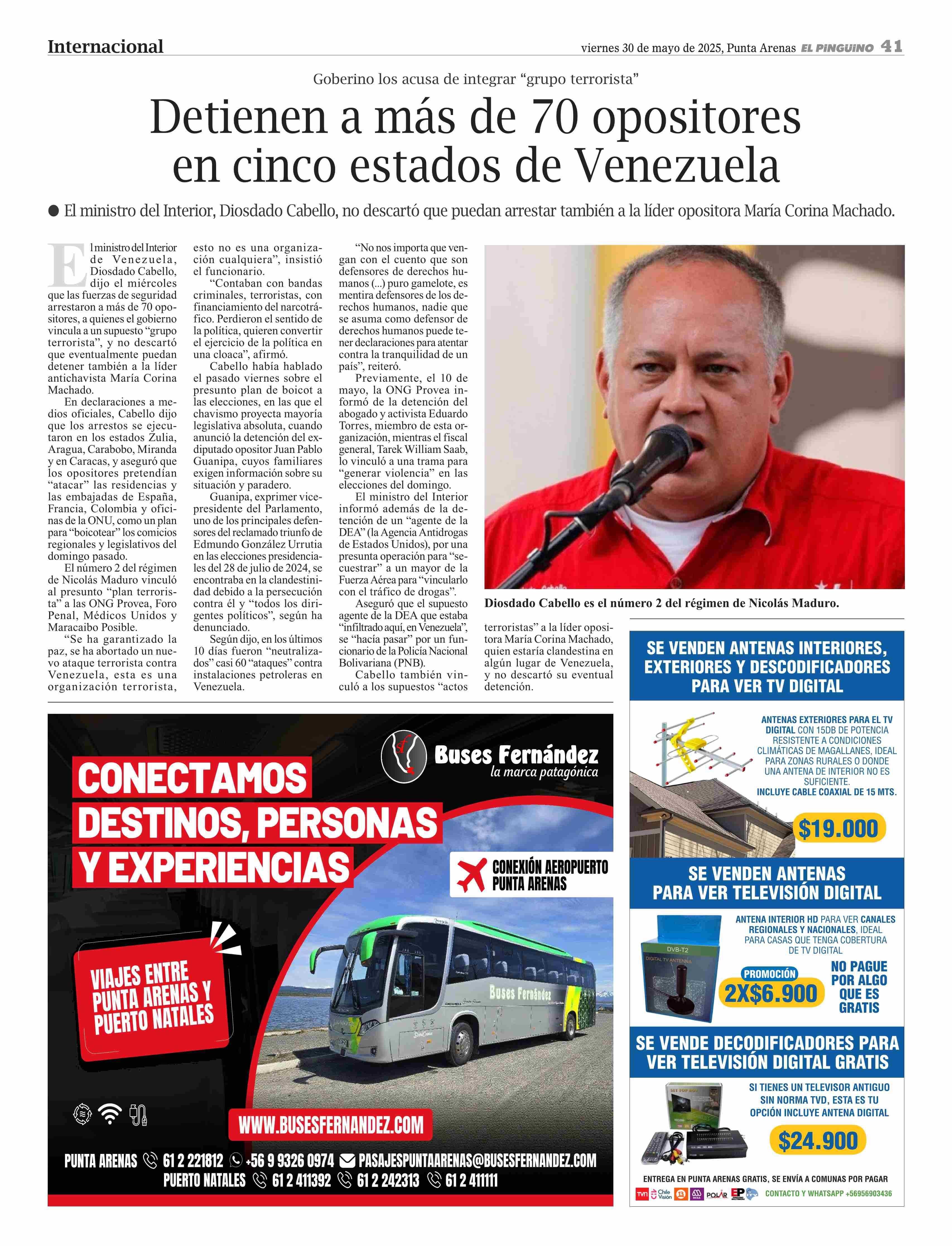 Detienen a más de 70 opositores en cinco estados de Venezuela 30-05-2025 El Pingüino |