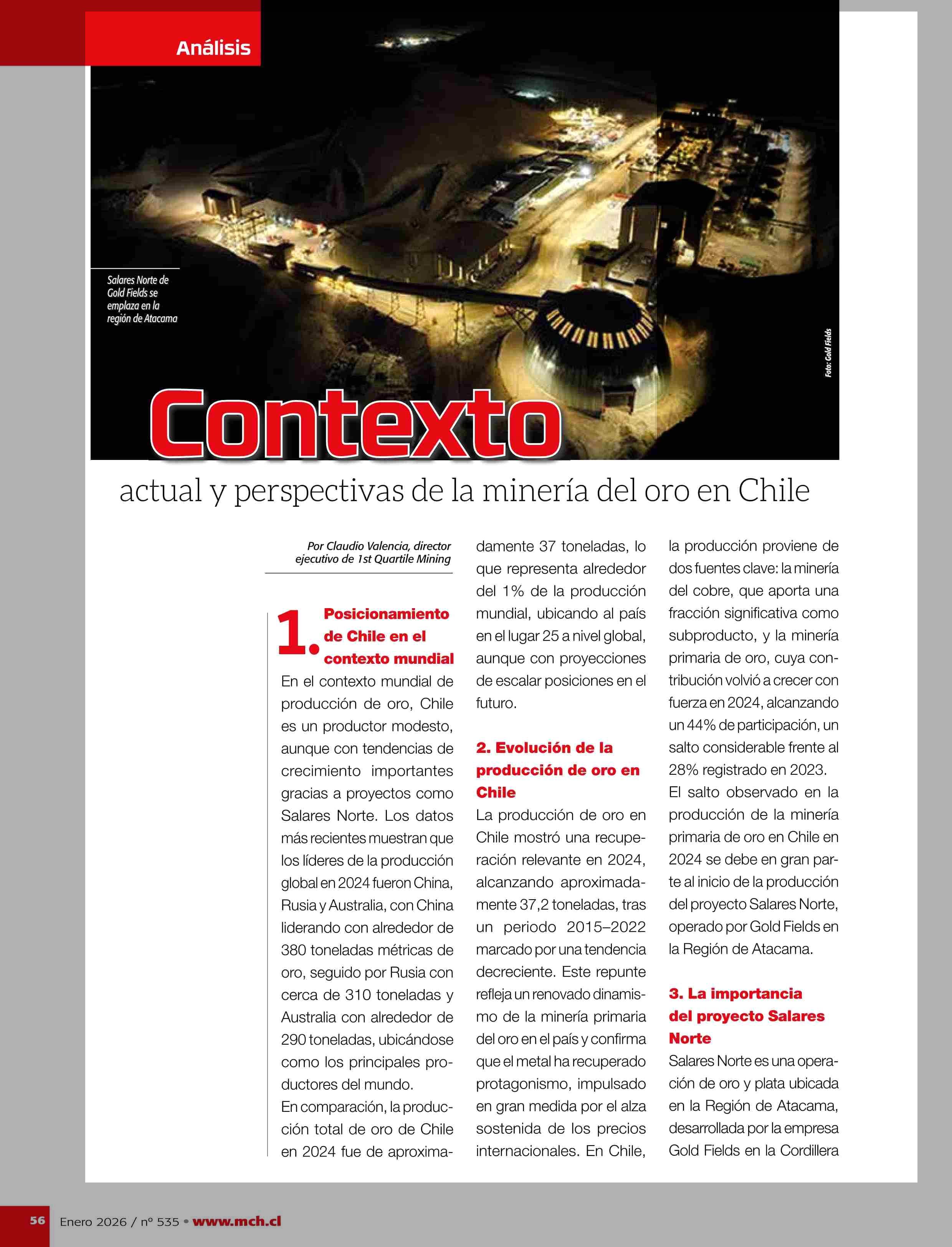 Contexto actual y perspectivas de la minería del oro en Chile 23-01-2026 Revista Minería Chilena |