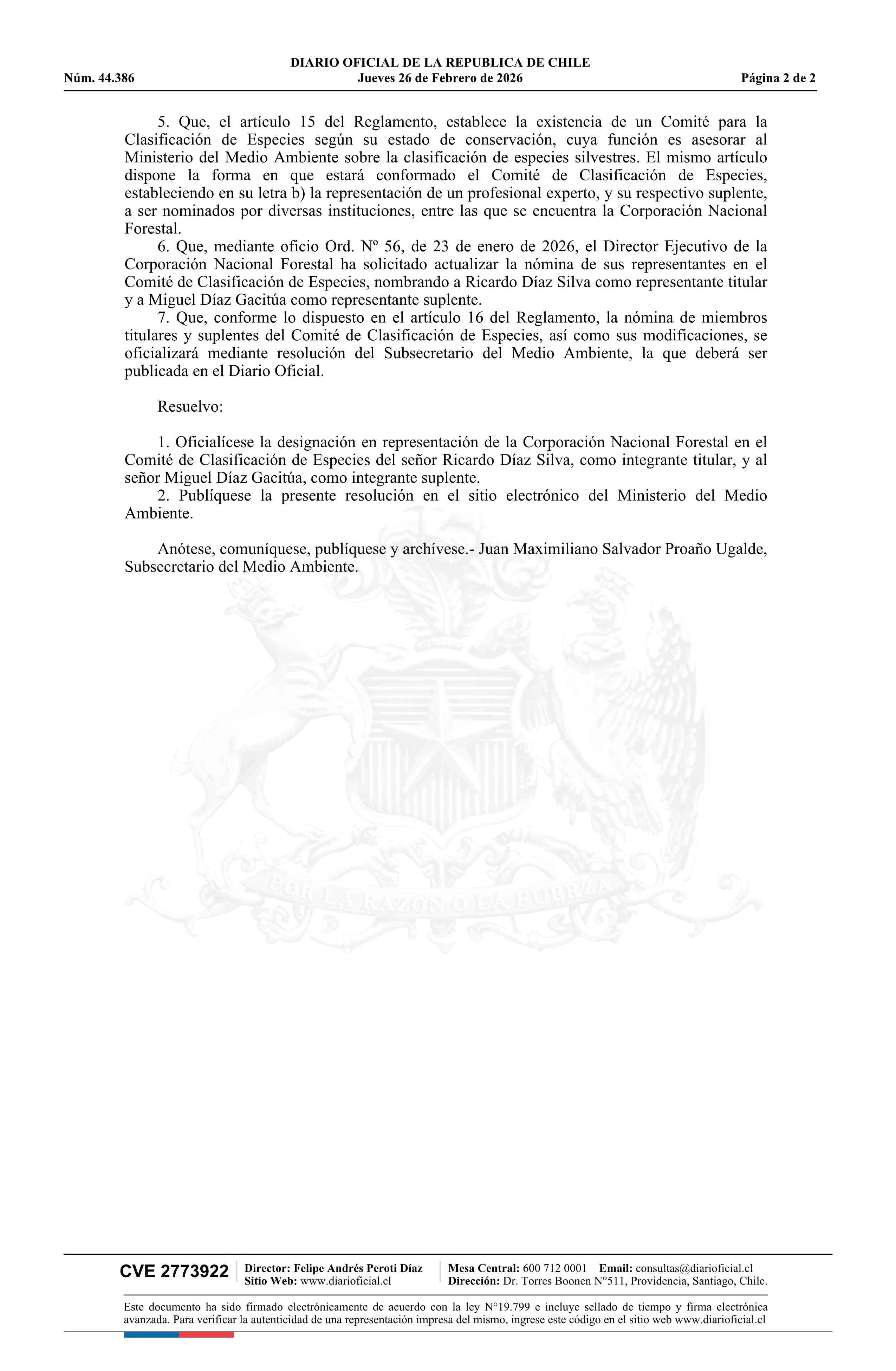 Título: Resolución exenta número 656, de 2026.- Oficializa integración de representantes nominados por la Corporación Nacional Forestal al Comité de Clasificación de Especies