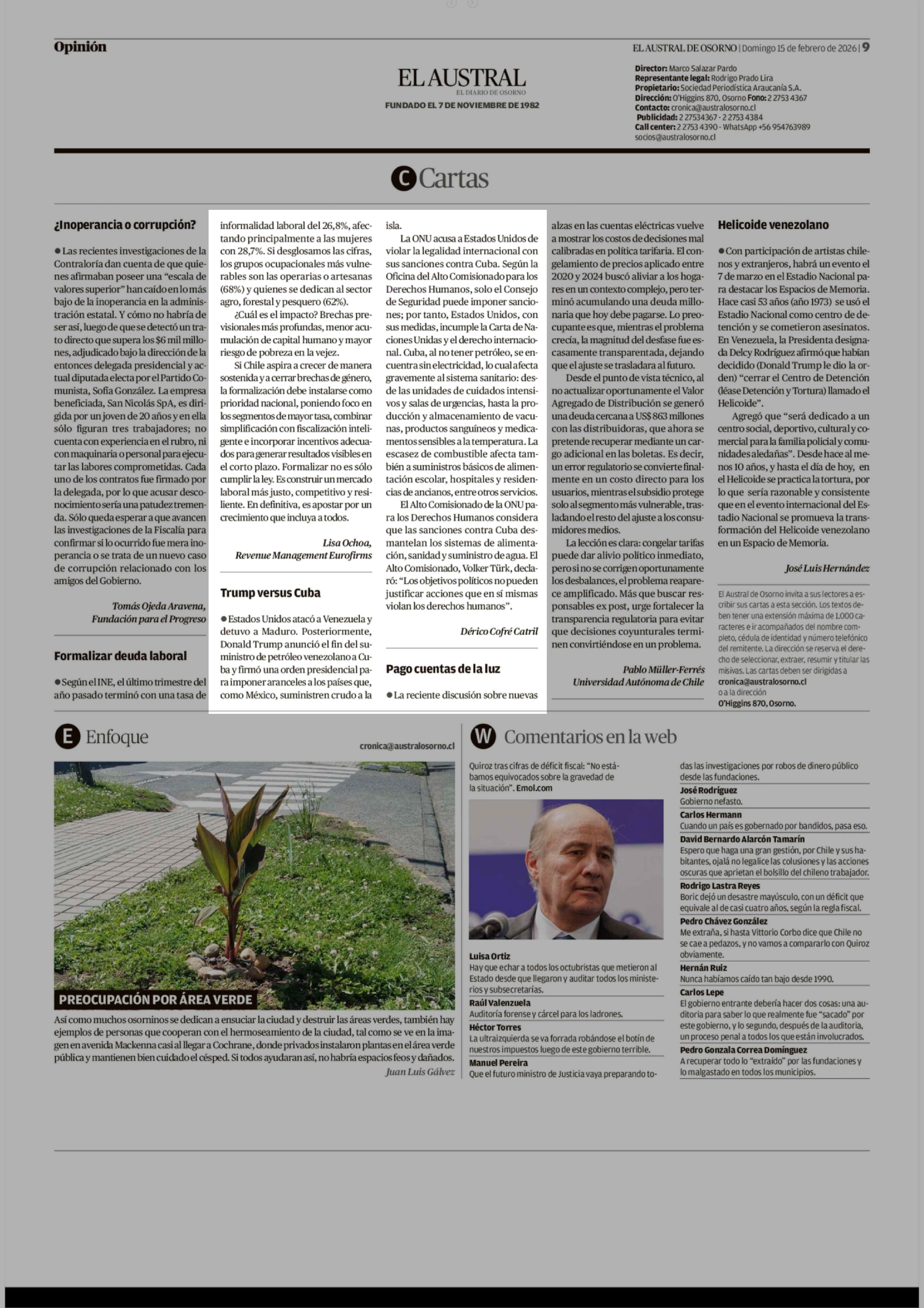 Cartas: Trump versus Cuba 15-02-2026 El Austral de Osorno |