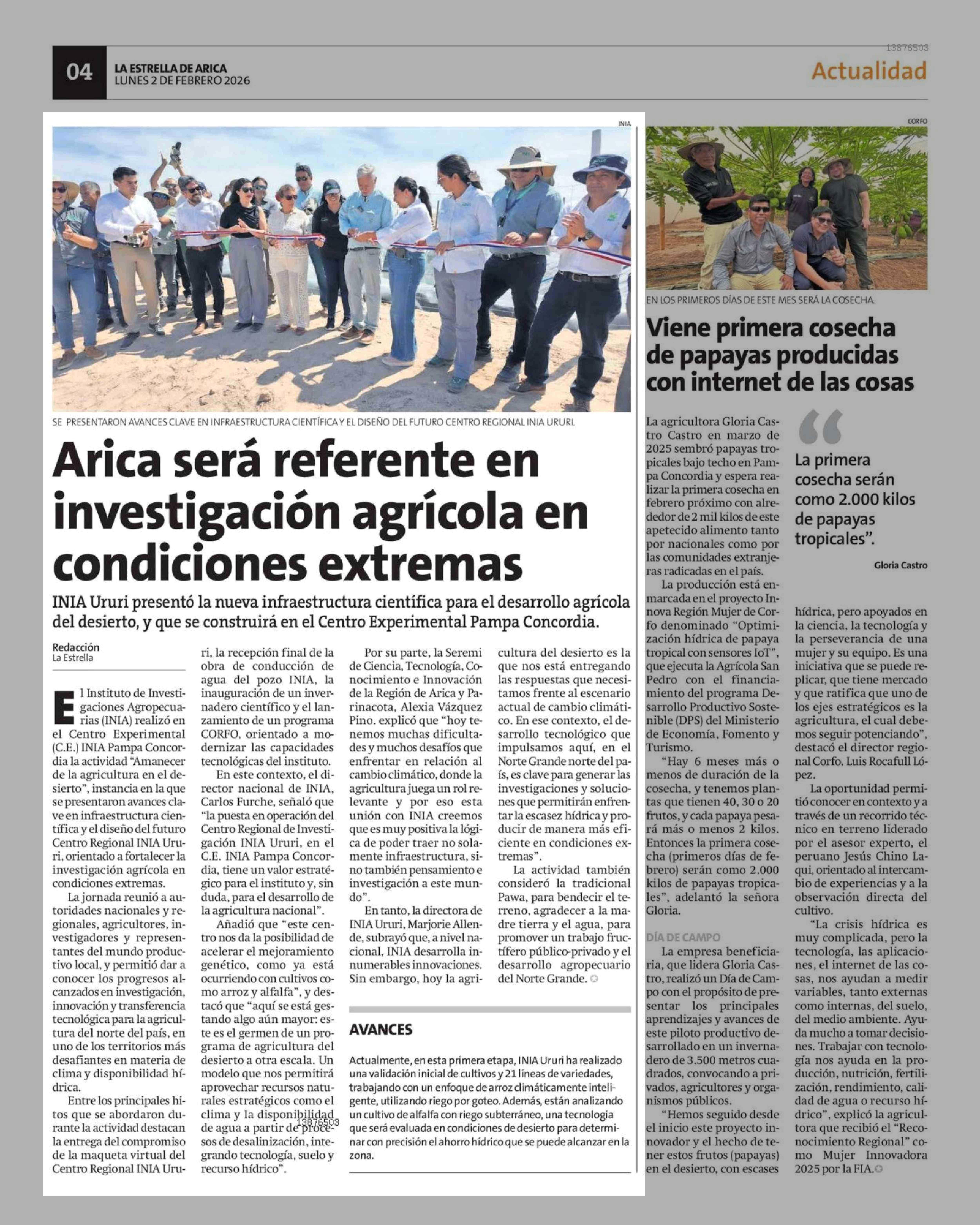 Fecha: 02-02-2026 Sector: Noticia general Región: Región de Arica y Parinacota