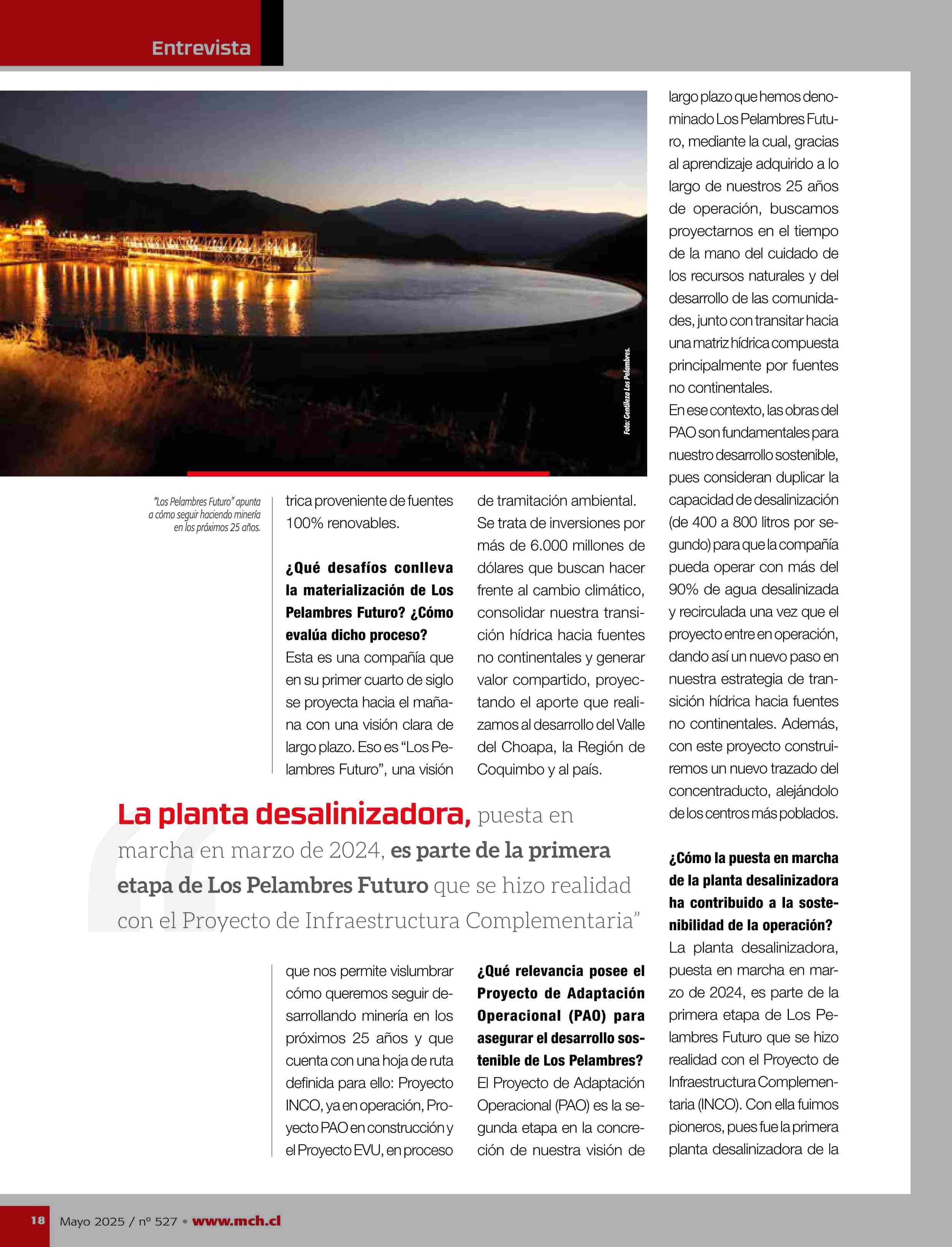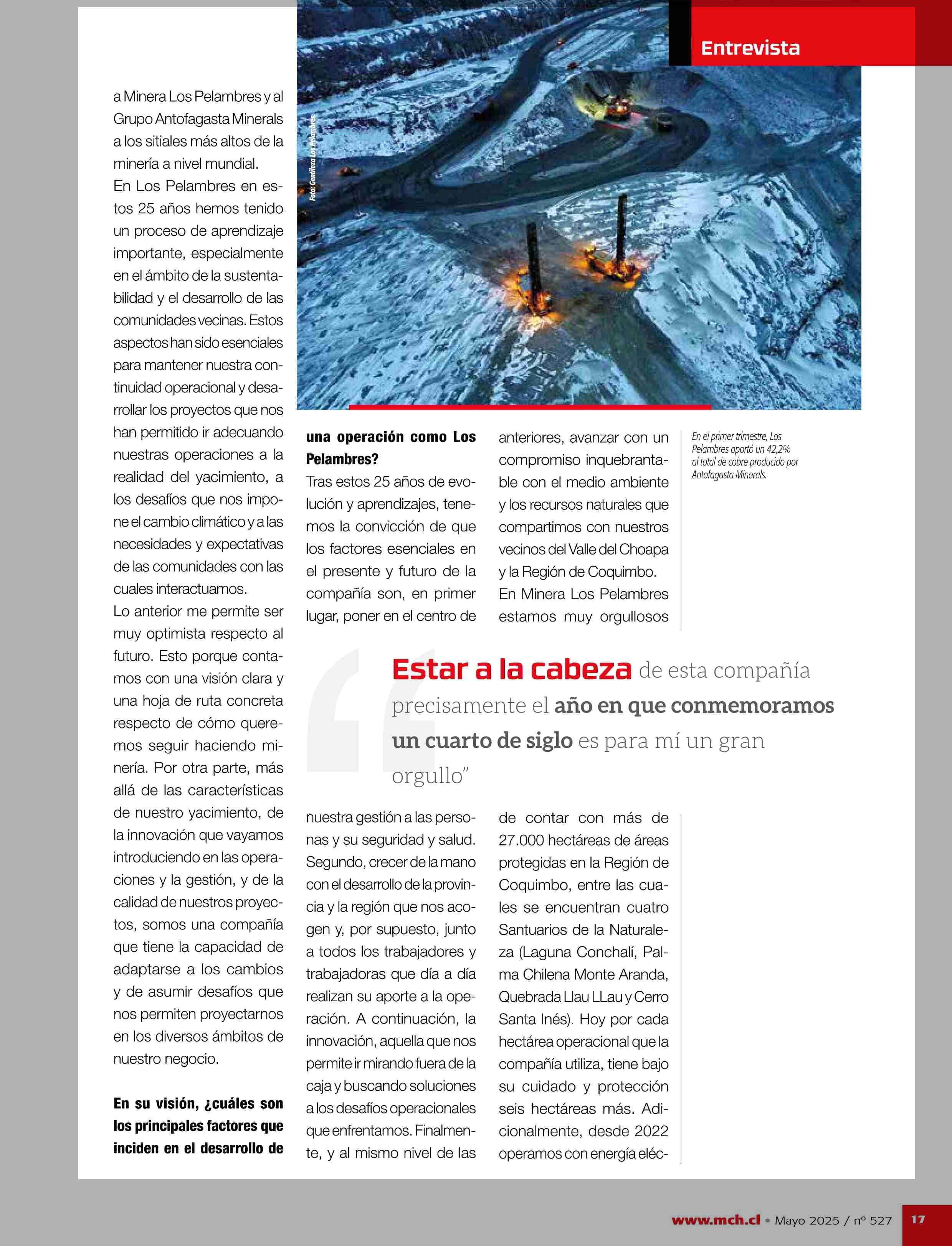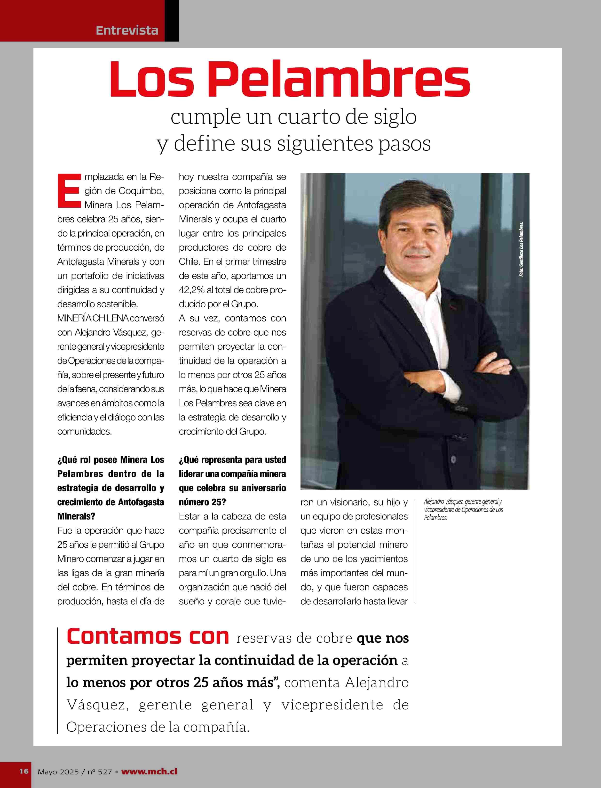 Título: Los Pelambres cumple un cuarto de siglo y define sus siguientes pasos