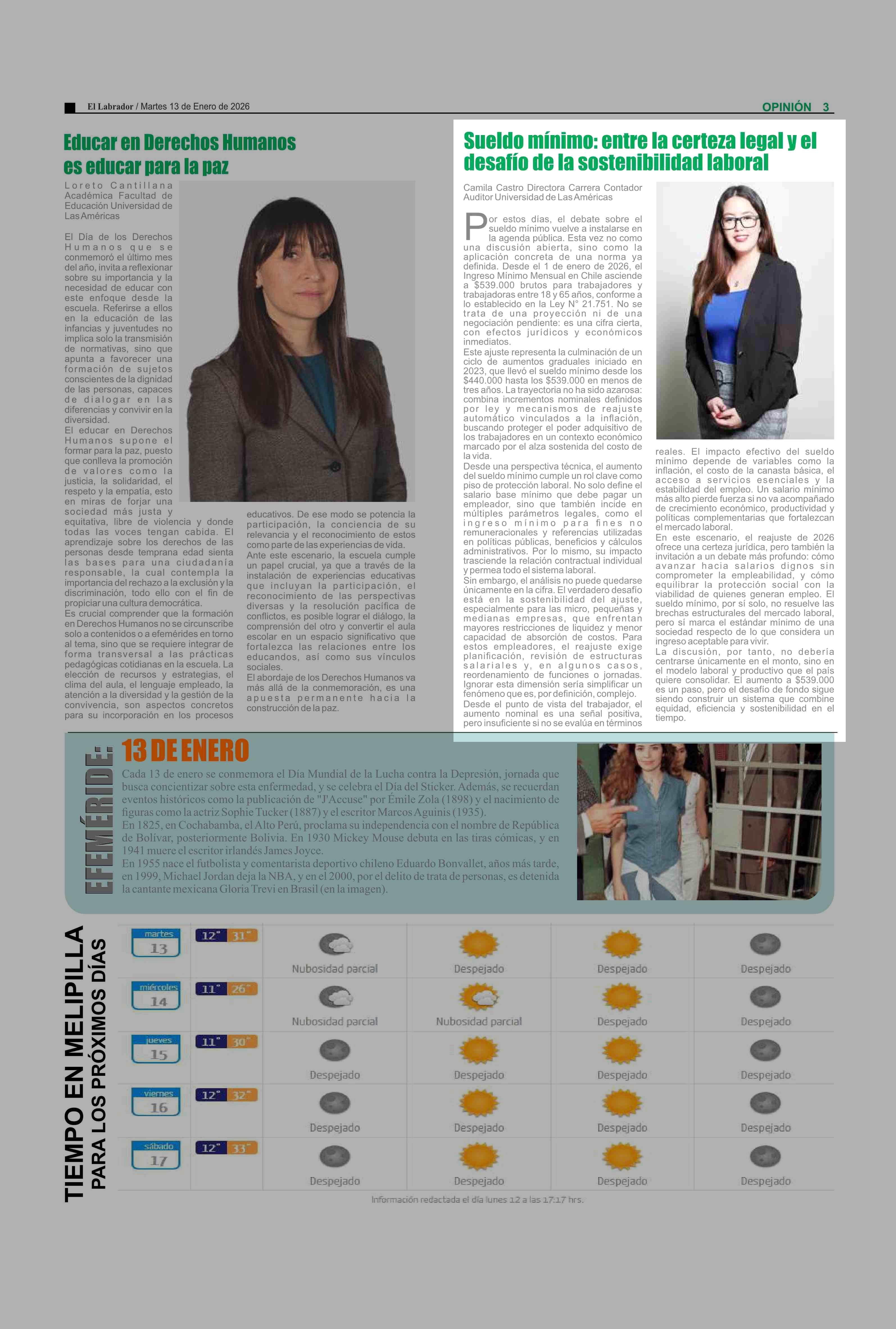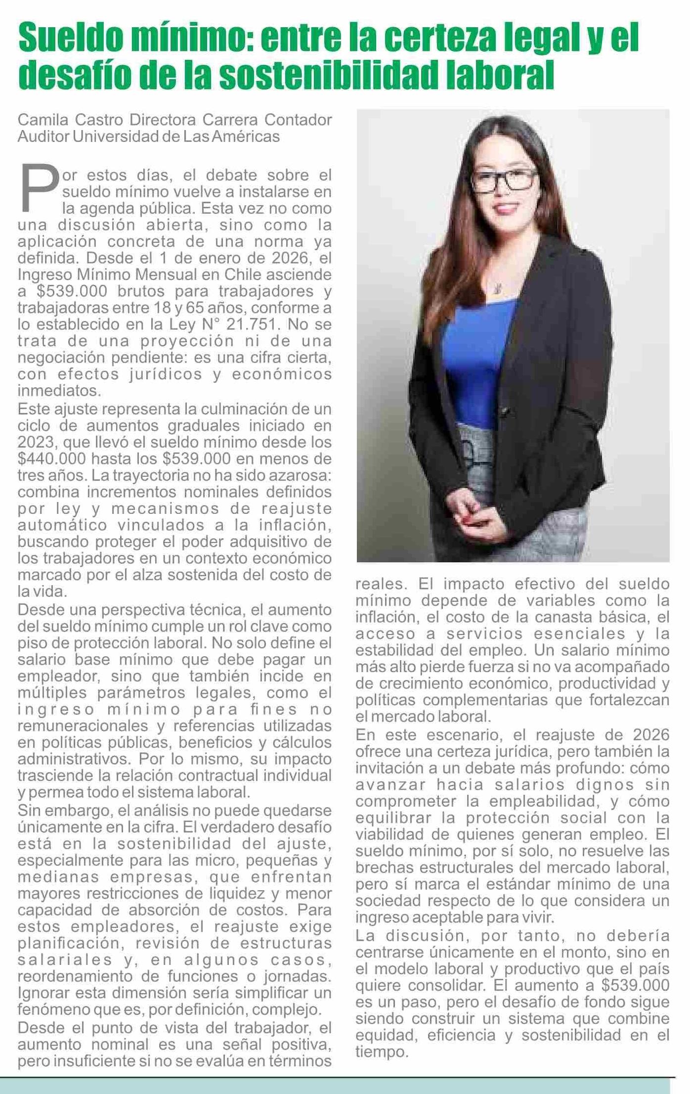 Columnas de Opinión: Sueldo mínimo: entre la certeza legal y el desafío de la sostenibilidad laboral 13-01-2026 El Labrador |