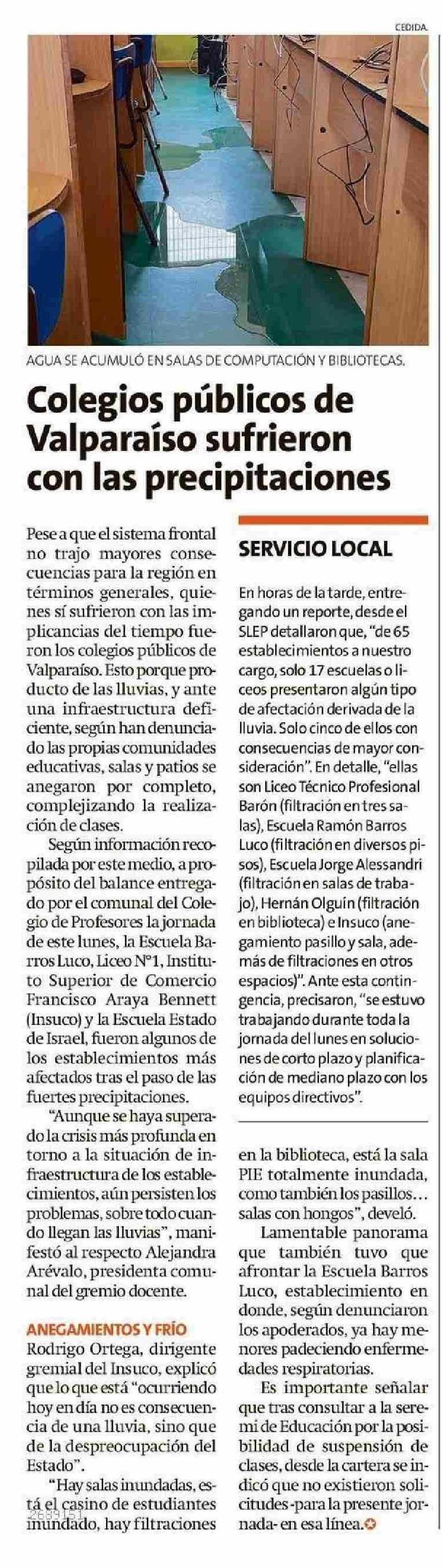 | Título: | Colegios públicos de Valparaíso sufrieron con las precipitaciones |