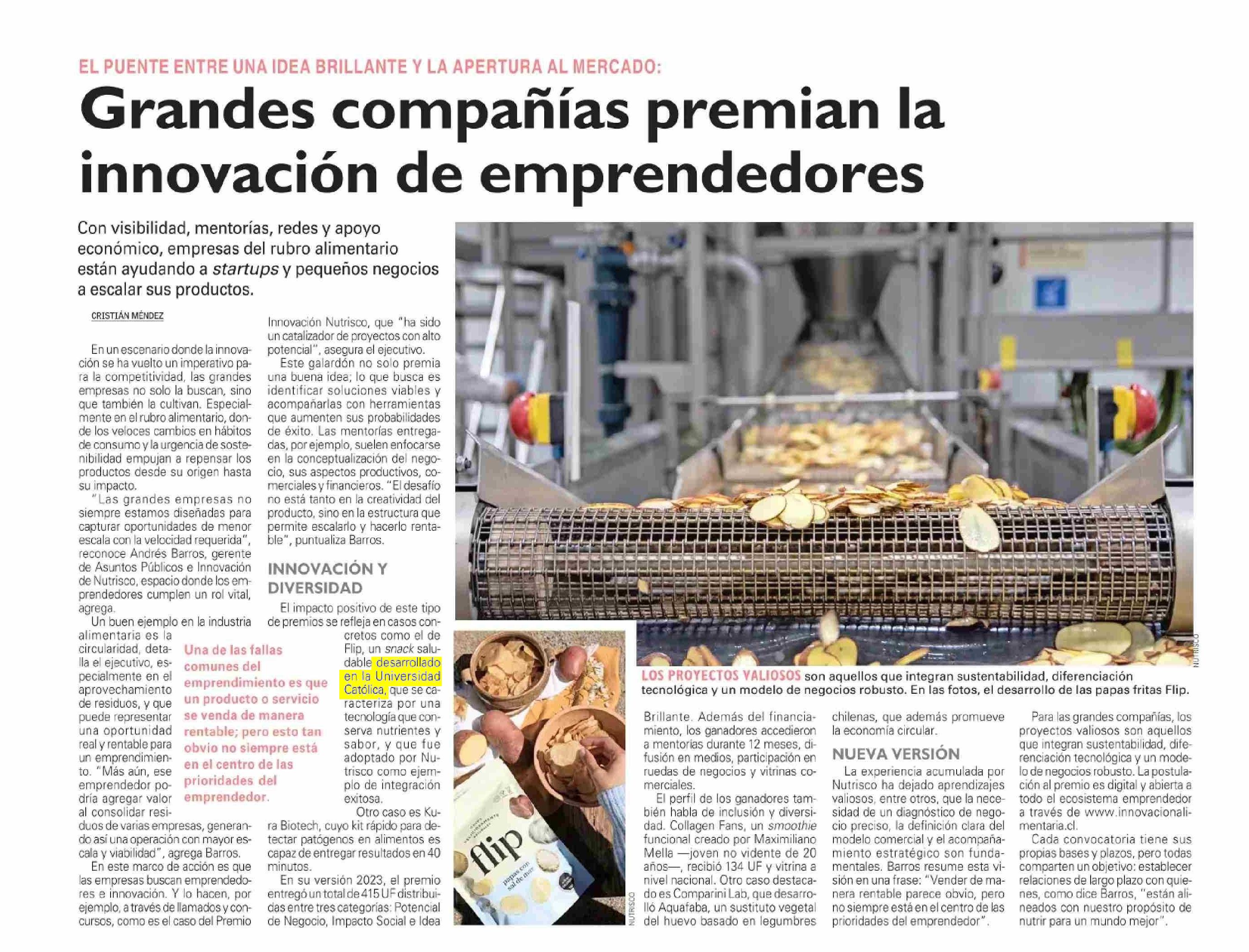 Grandes compañías premian la innovación de emprendedores 16-04-2025 El Mercurio |
