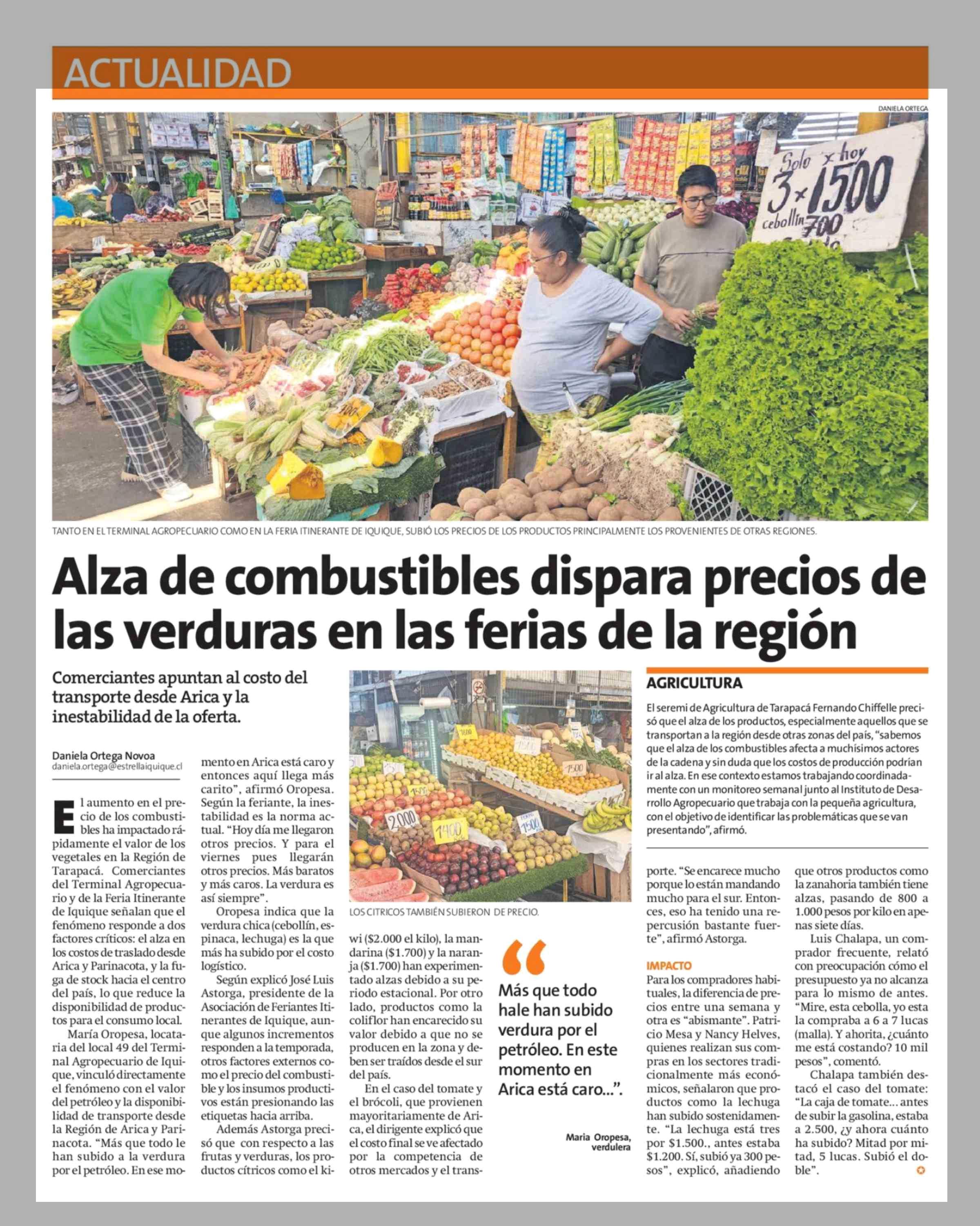 Alza de combustibles dispara precios de las verduras en las ferias de la región 08-04-2026 La Estrella de Iquique |