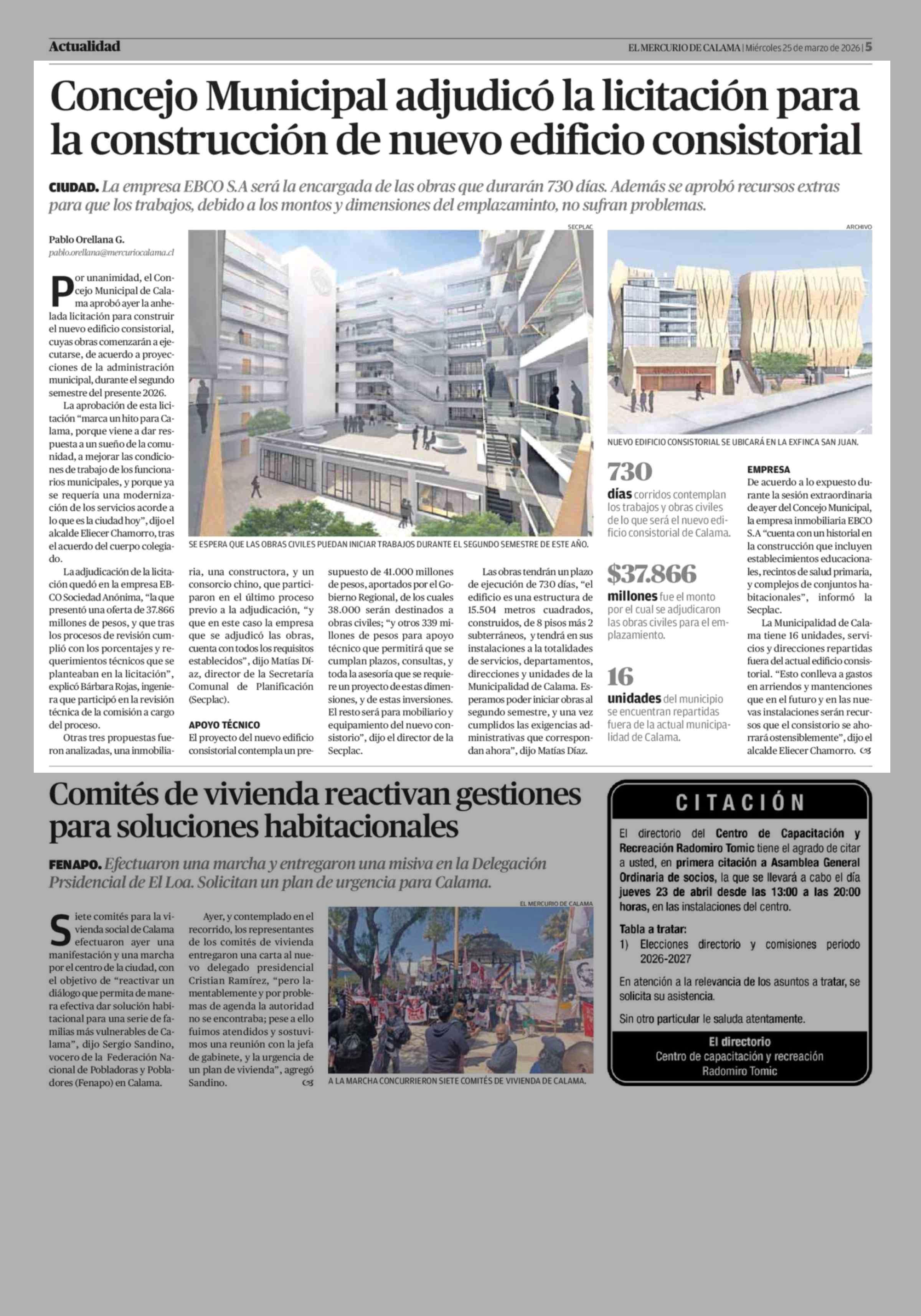 Fuente: El Mercurio de Calama (El Mercurio de Calama) Página(s): 5
