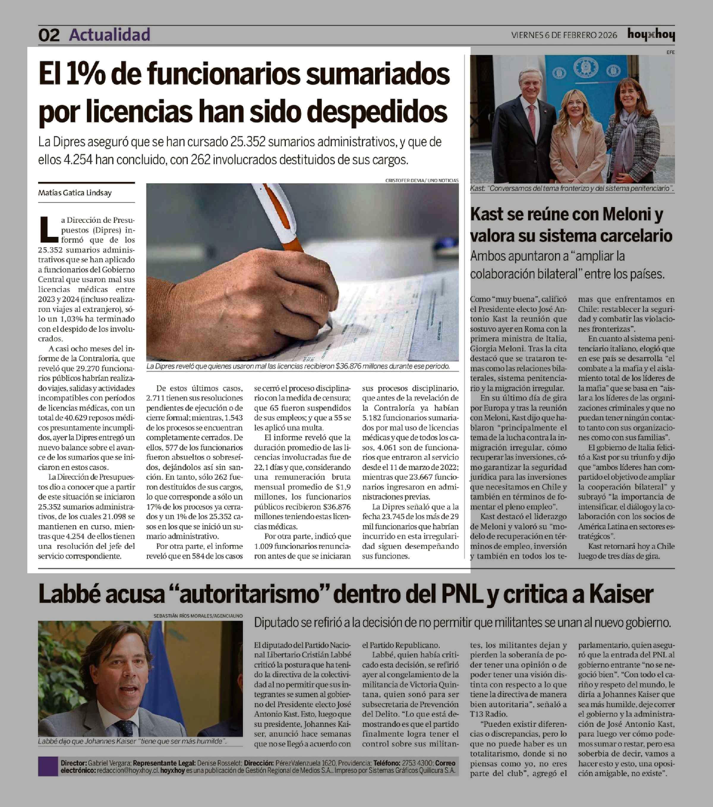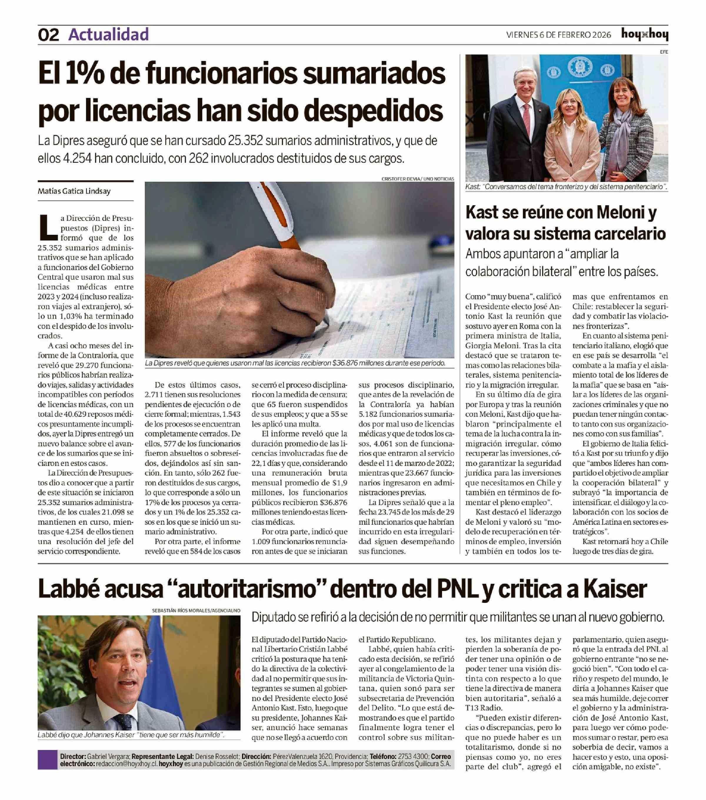 El 1% de funcionarios sumariados por licencias han sido despedidos 06-02-2026 Hoy x Hoy |