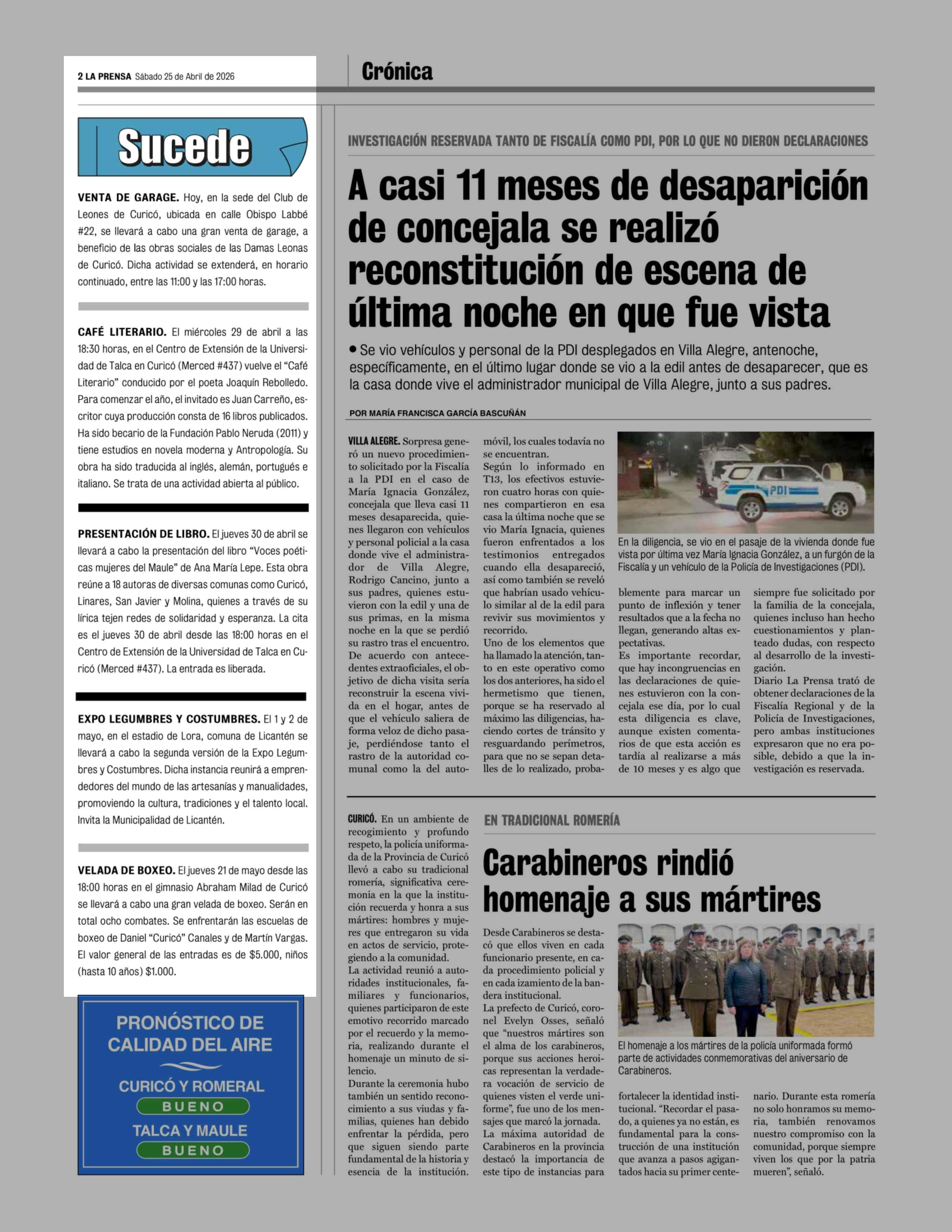 | Fecha: | 25-04-2026 | Sector: | Noticia general | Región: | Región del Maule |